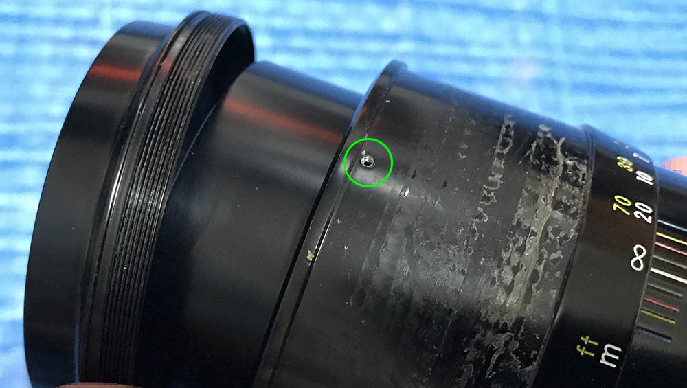 The focusing ring is held by these screws. You could adjust the focusing ring if you loosen these that’s why they’re sealed at the factory. Use solvents and wait for the seals to get dissolved before you extract these.