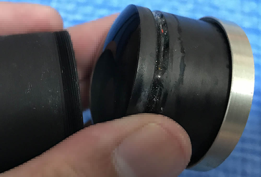 Once the seal has softened, unscrew the collar to separate the 2nd group. It is a huge block of cemented glass so be sure not to drop it. This was glued to the collar so don’t bother separating it.