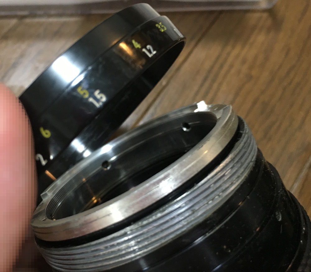 Clean everything well and don’t leave any residue. Since this only has a pair of helicoids I applied a thick type of grease so I could precisely focus with it. Never apply too much as that will create a mess and cause an even bigger trouble later when the oil migrates to the iris and optics. Only apply a thin film where needed such as the helicoids. Contact surfaces will require even less grease, you don’t want to leave a messy goo inside of the barrel.