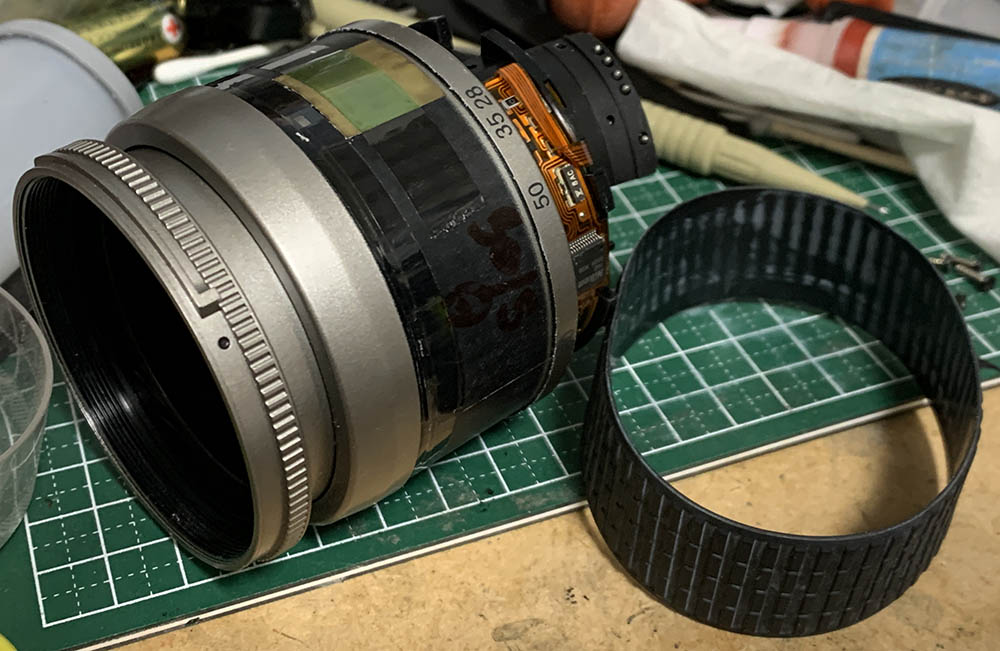 This took me longer than expected since there’s a couple of things that went wrong during disassembly such as the thrust-cam dislodging from the chassis. It took me some time to get it back since it’s tight inside. When repairing autofocus lenses you should never dismantle the lens down to its bare components, you only repair what’s wrong and leave the rest alone. This is because they’re more complicated to reassemble and there are electronics as well which are sensitive. If your lens needs repair just look for a replacement because these are not made to be repaired as evident by the sealed rear optics assembly, you merely treat them like disposable lighters which is a shame because it would have been a lot better if it was made with a slightly-higher quality in terms of construction. It couldn’t be helped because the competition was tough, every yen saved in making one of these was crucial.