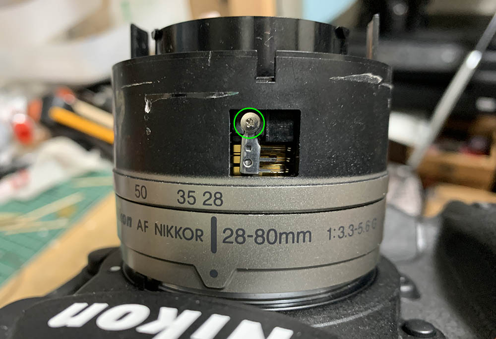 Carefully extract the screw of the zoom ring’s brush, note that I accidentally bent one of the feelers, that needs to be bent-back into shape.