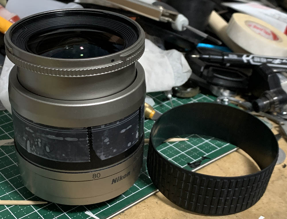 Remove the rubber part of the zoom ring and be careful not to tear it.