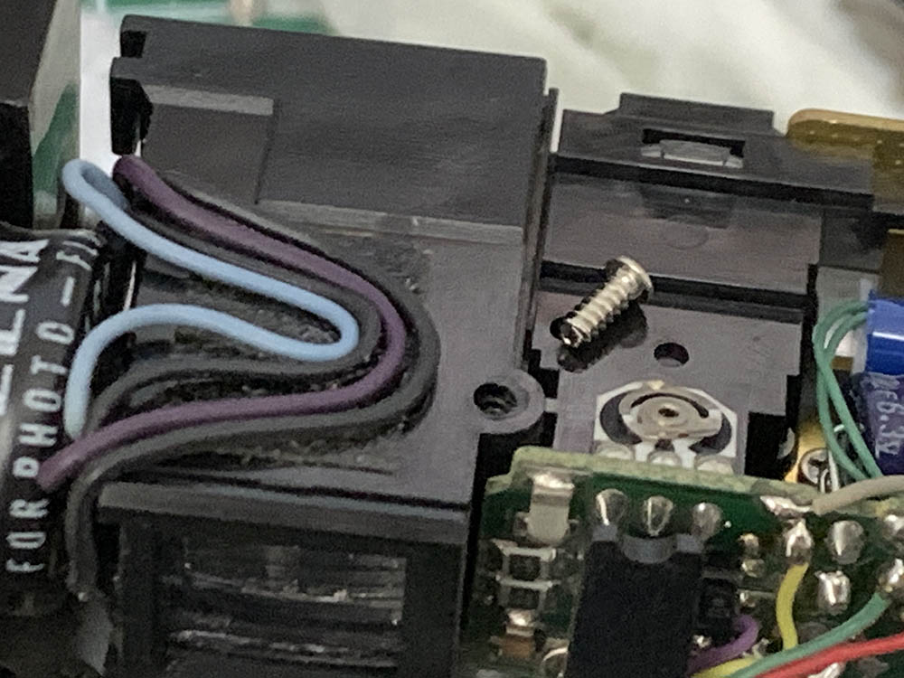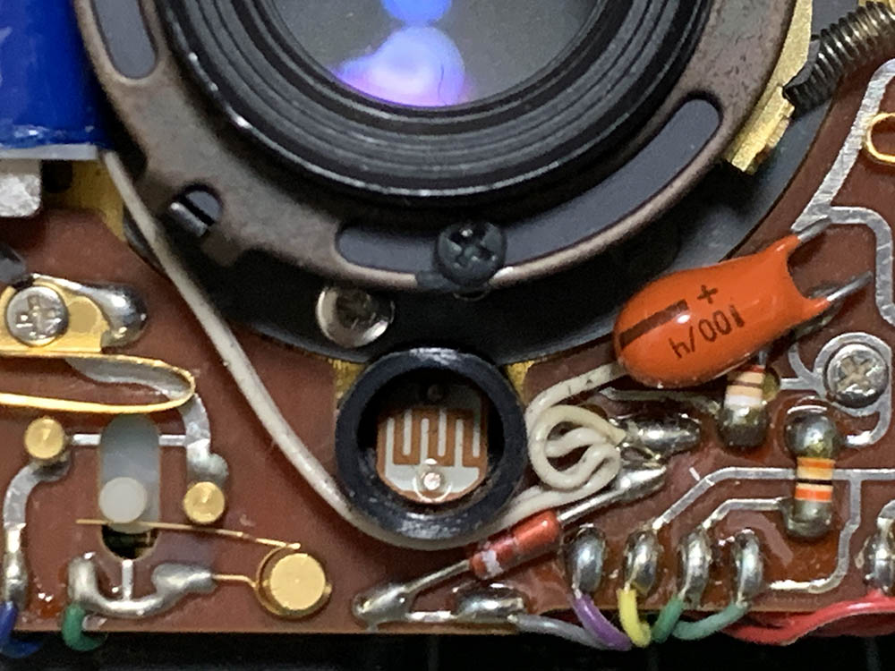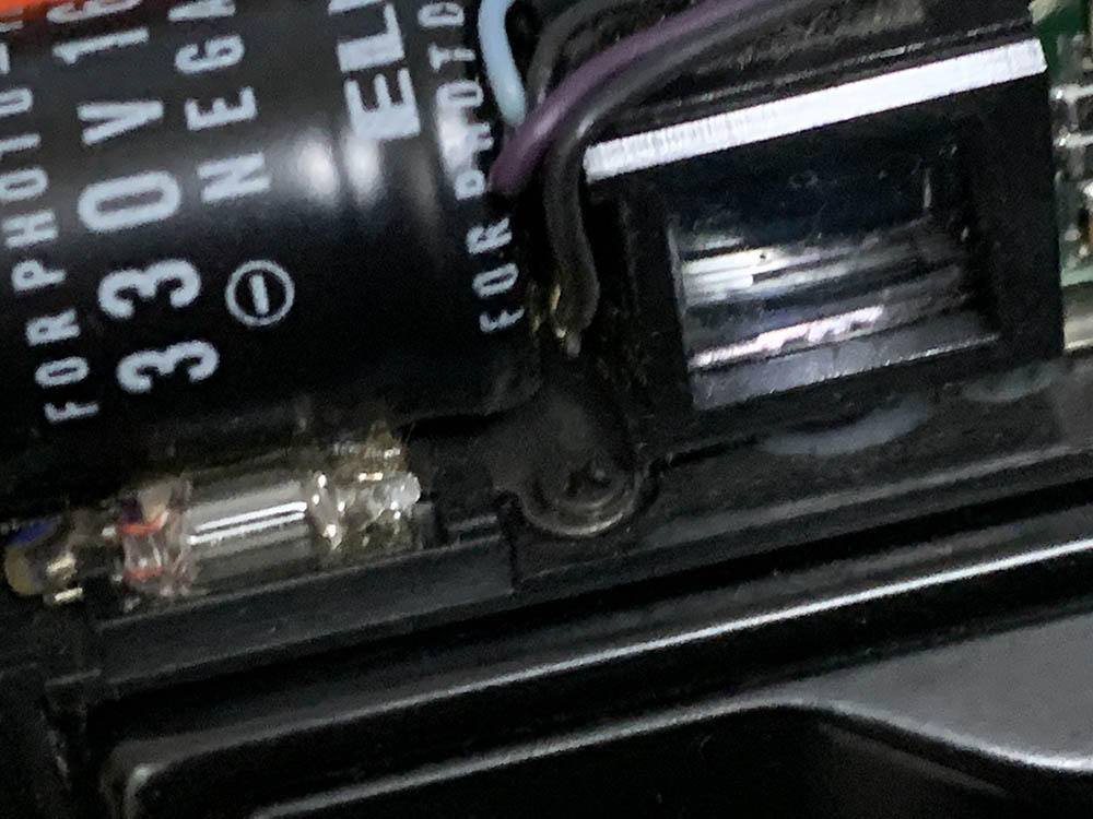 Carefully remove the top cover. You should discharge the capacitor with a multimeter and make sure that the voltage is less than 8v before you work on the camera. I have been shocked numerous times and I never learn my lesson. It’s not easy to discharge this without peeling the capacitor off from the chassis.