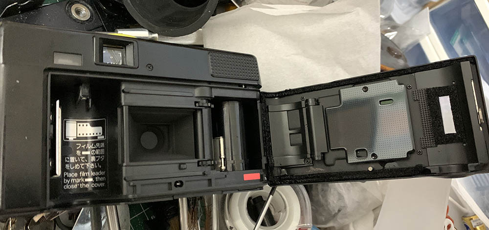 With series of cleaning and reassembling, it runs, but the flash won’t pop up and it will keep winding when the camera back is close(I mean the hatch).