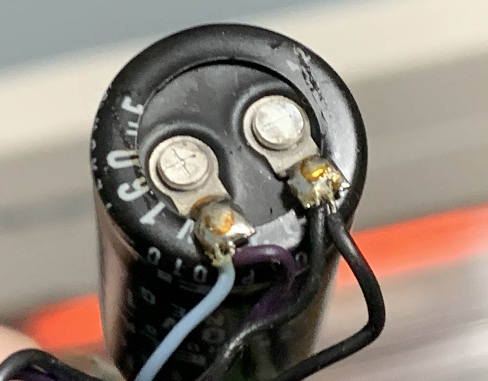 This is how the wiring looks like when you decide to replace the capacitor. Be sure to discharge it first before you work on it in order to prevent any accidents.