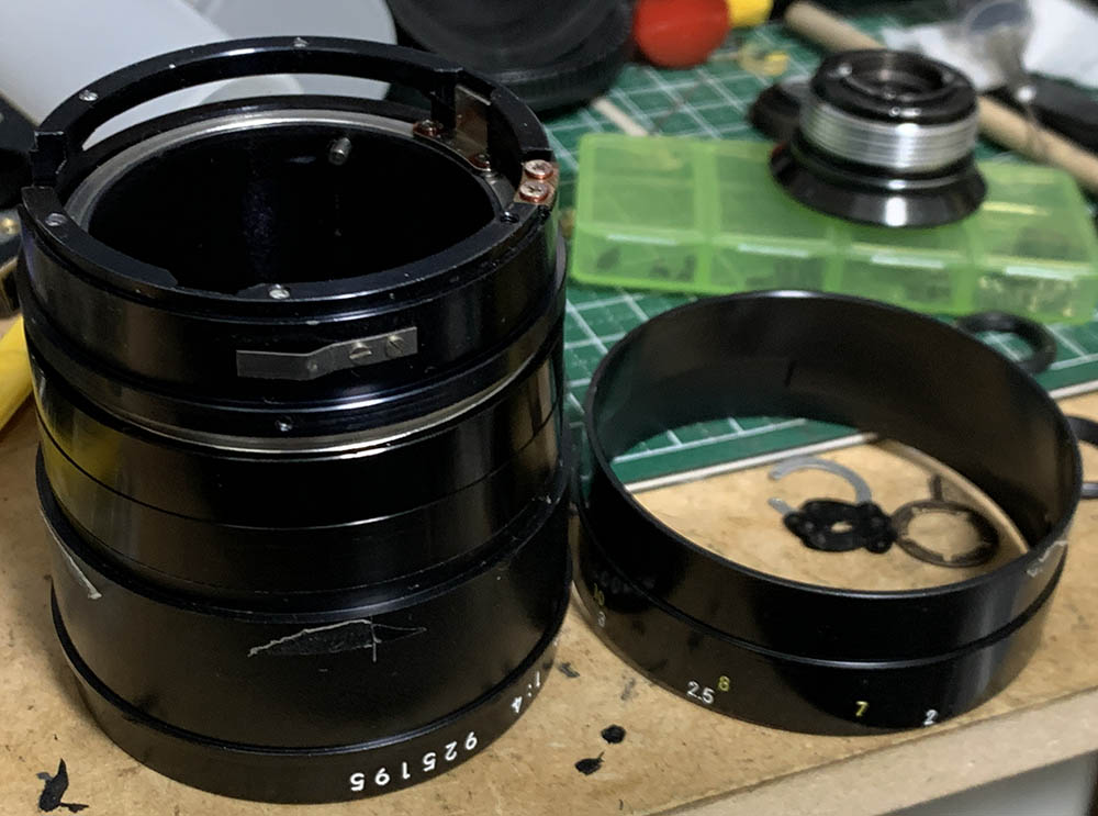 This isn’t a difficult lens to service for an experienced repairer, this is the 3rd time I’ve done this so I know all about repairing it. Its construction is simple but removing some of the parts can be stressful since some of the retainers are situated close to the glass. I’m lucky that I did not have to clean the glass since it looks great, all I had to do was to overhaul the barrel, it’s clean but it needs fresh grease. I won’t show you how to service the glass or the iris mechanism, if you need to do that, read my other articles to get hints.