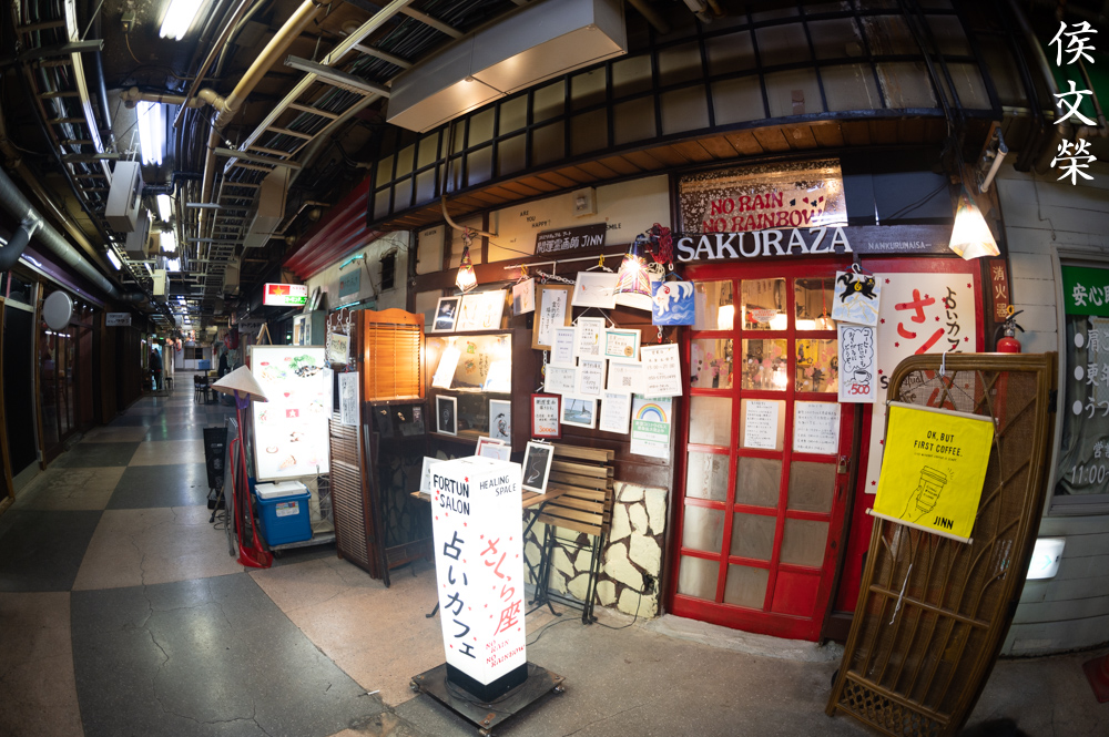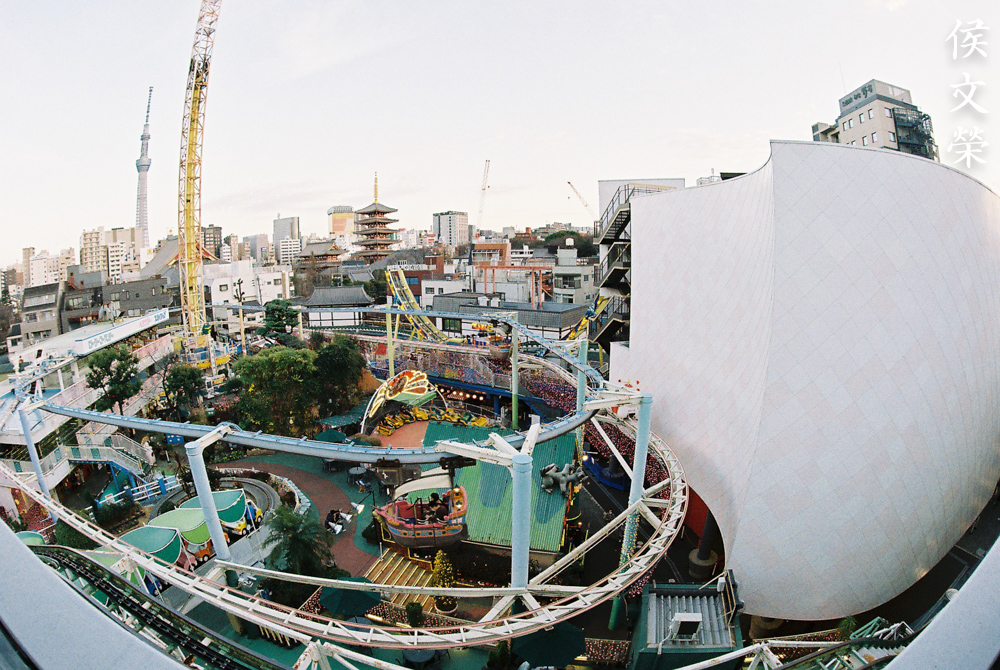 It can be difficult to meter with it since the coverage is just too-wide. Using a light-meter will help you get better exposure if your scene has areas of varying illumination such as this arcade. The flare at the corner comes from the Sun’s reflection.