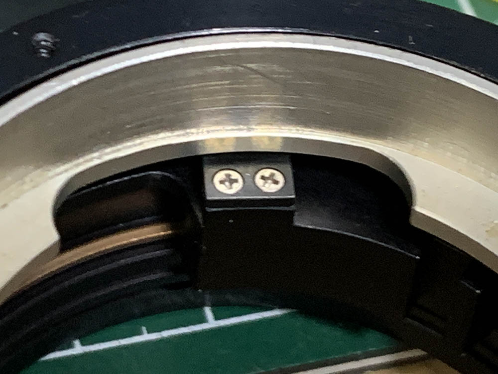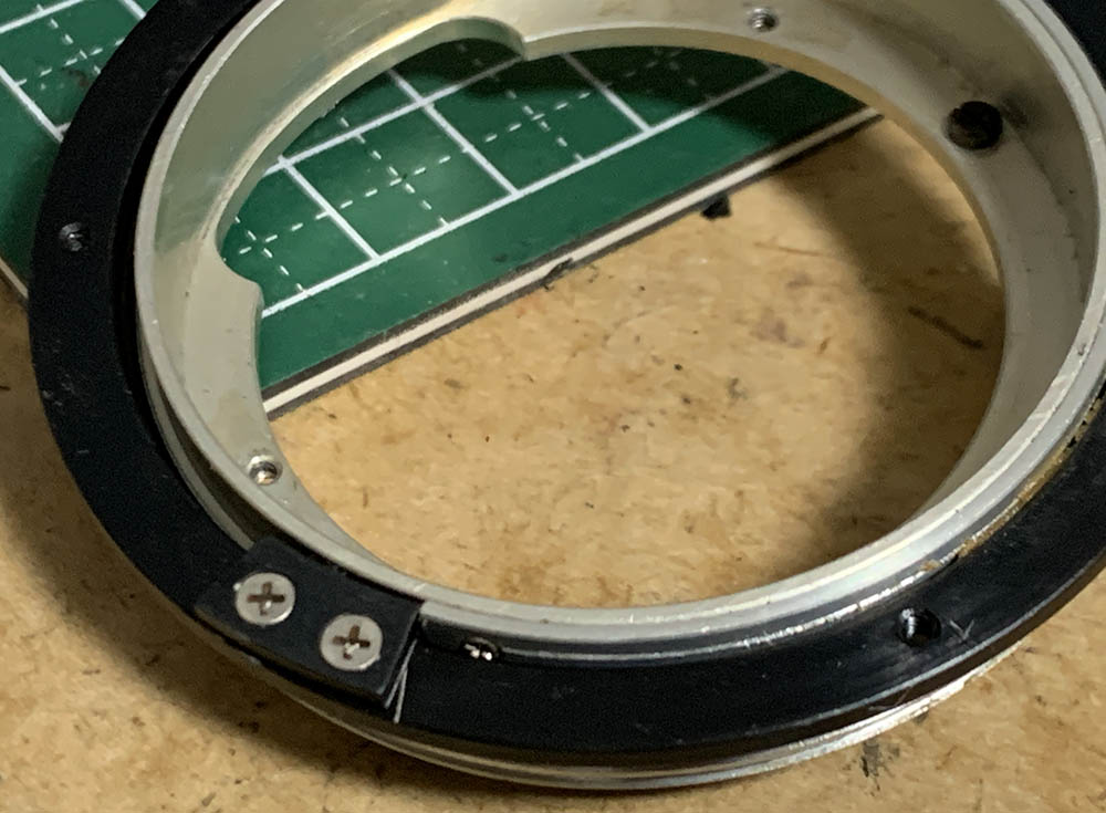 Remove the bayonet mount and the aperture ring. There’s a set of brass shims underneath the bayonet, these are used to adjust the focus of your lens so don’t lose any of them. even a 0.05mm shim will cause the lens to focus incorrectly by a huge margin since it has such a short travel.