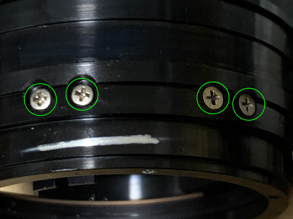 Carefully extract these to remove the guides of the helicoid. Note that they aren’t identical, one set is flush-headed while the other set is the usual pan-headed ones. Carefully remove the guides and don’t forget to note which one came from which side.