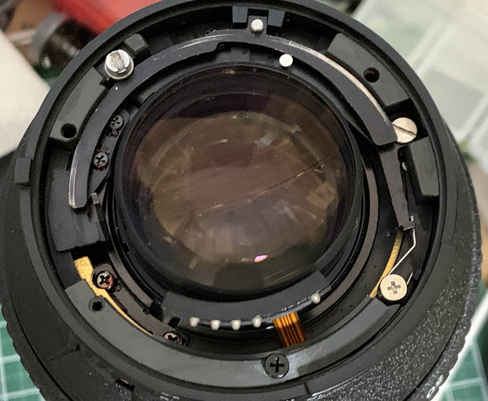 Examine everything here before you go any further so you’ll know how to put things back again later. The ribbon is delicate, don’t damage it or the lens will be bricked and only function as a manual-lens.
