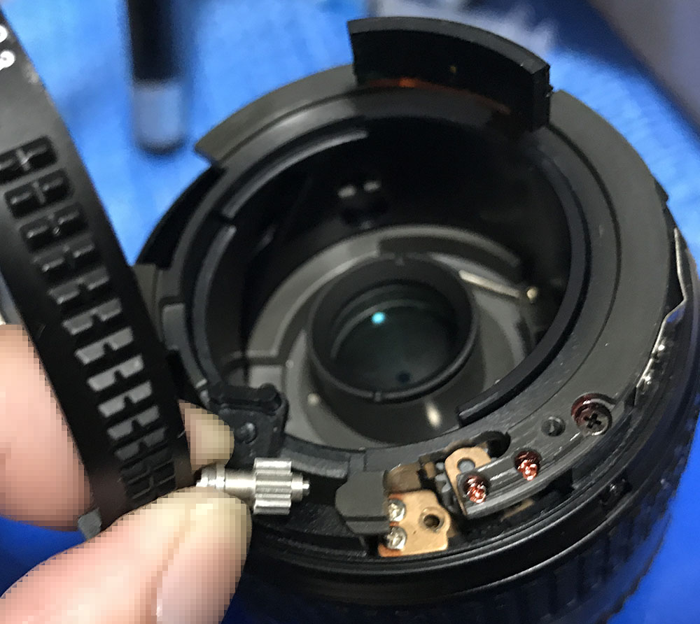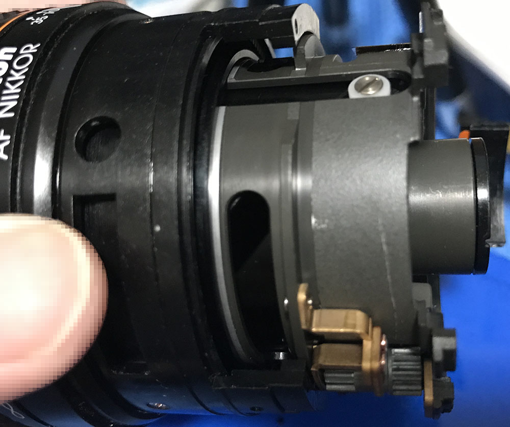 You can now access the gear-train of the focusing mechanism. If your lens won’t focus smoothly this is one of the things that you should check.