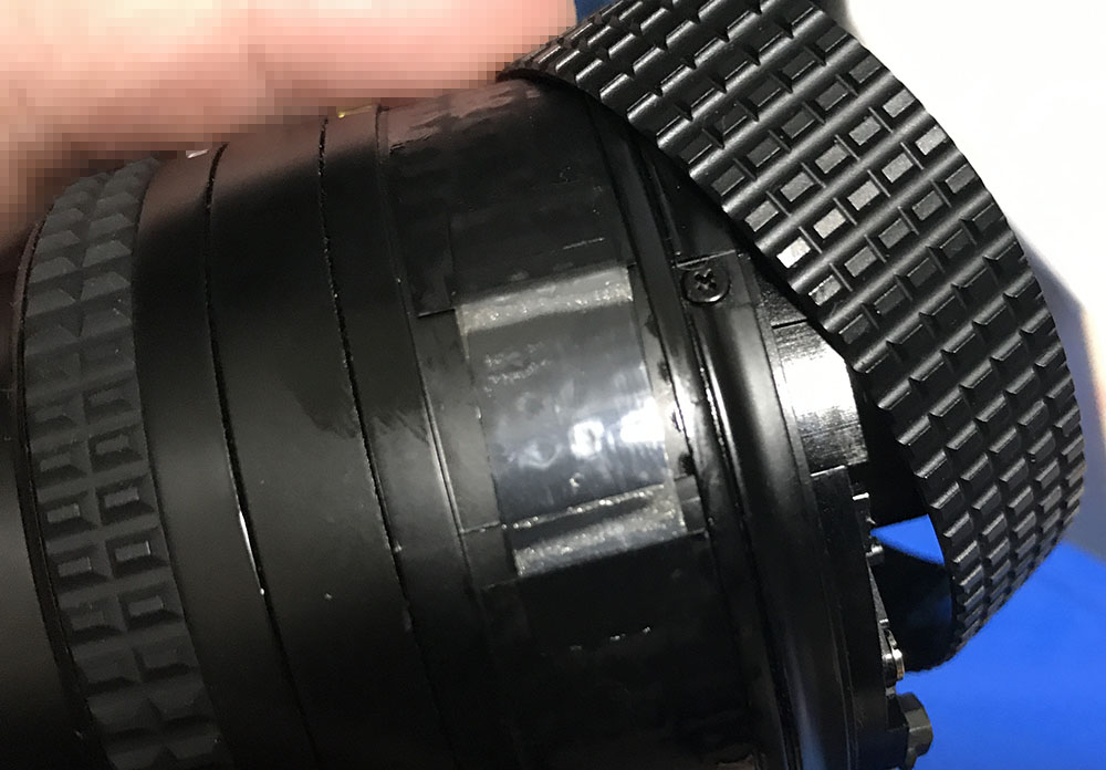 Carefully remove the rubber part of the focusing ring.