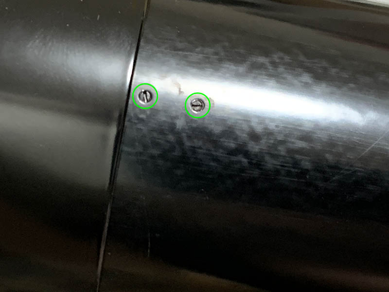 Carefully locate and extract these set screws. The lower one secures the whole front barrel to the rest of the barrel.