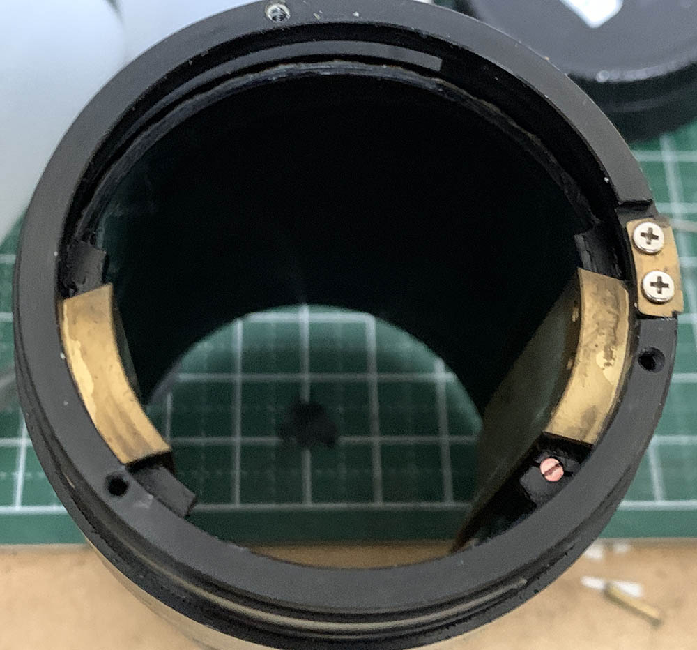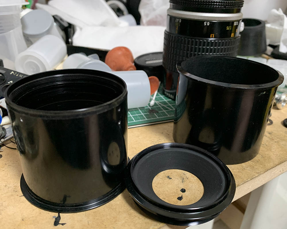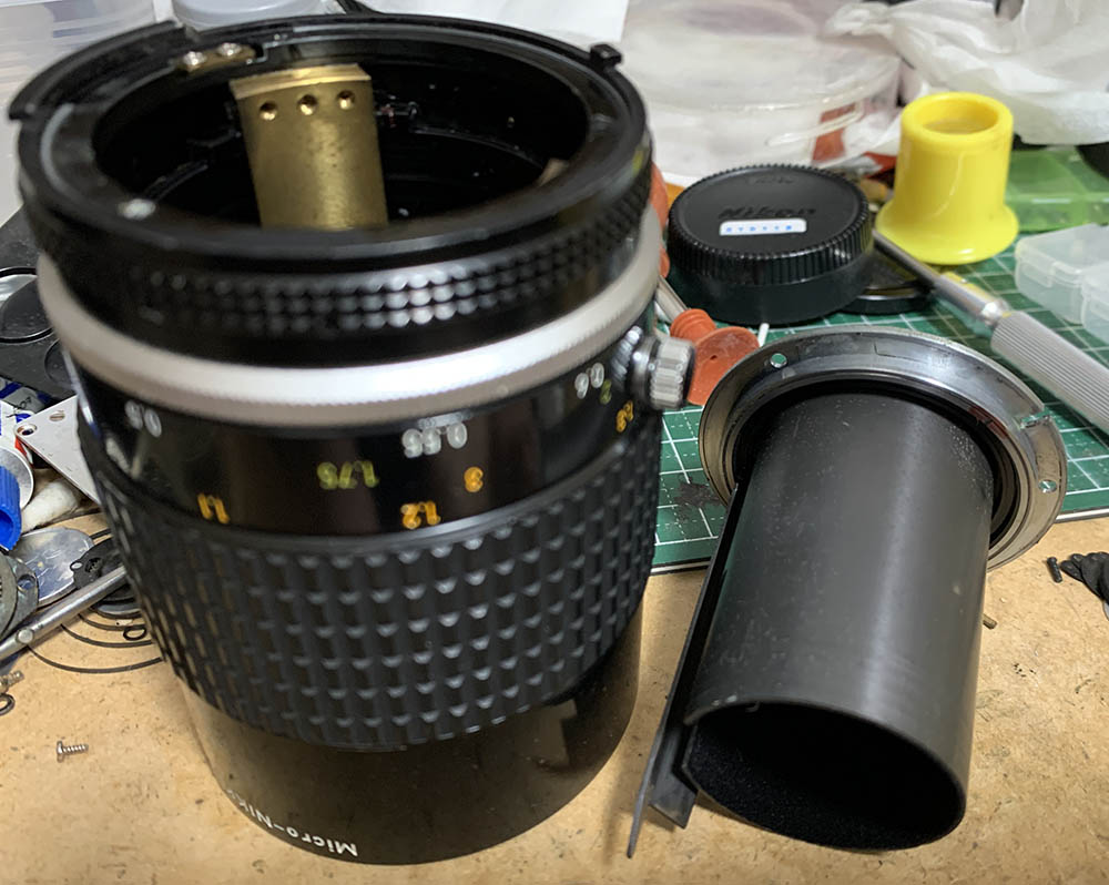 I didn’t have to service the optics except for the front optics block which is a bit foggy. The iris mechanism is also dry so I skipped it, too. If you need to dismantle the optics read my article on the Micro-Nikkor 105mm f/4 Ai since it shares a few common things with this, my other articles will also give you a couple of hints on how to dismantle the iris mechanism.