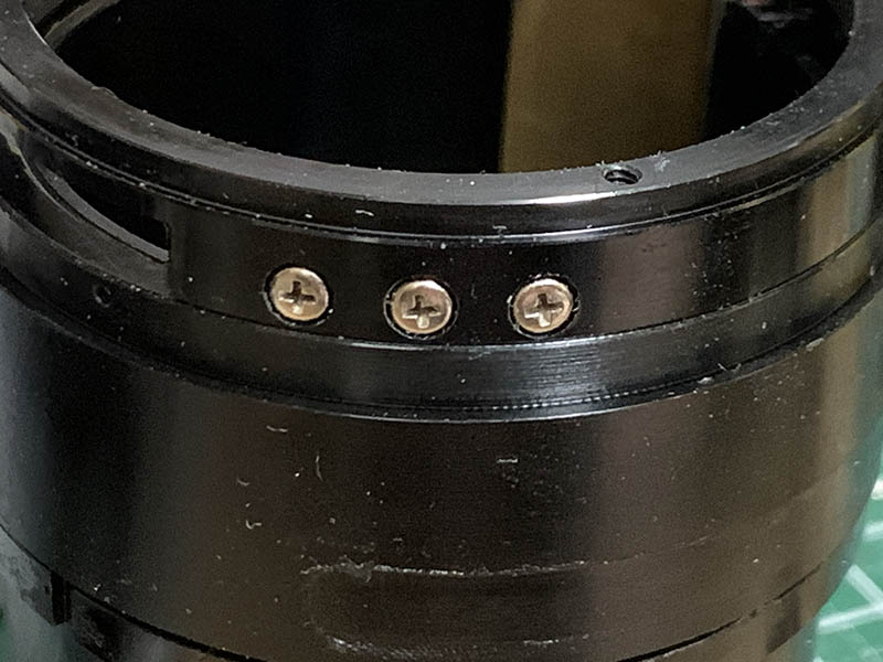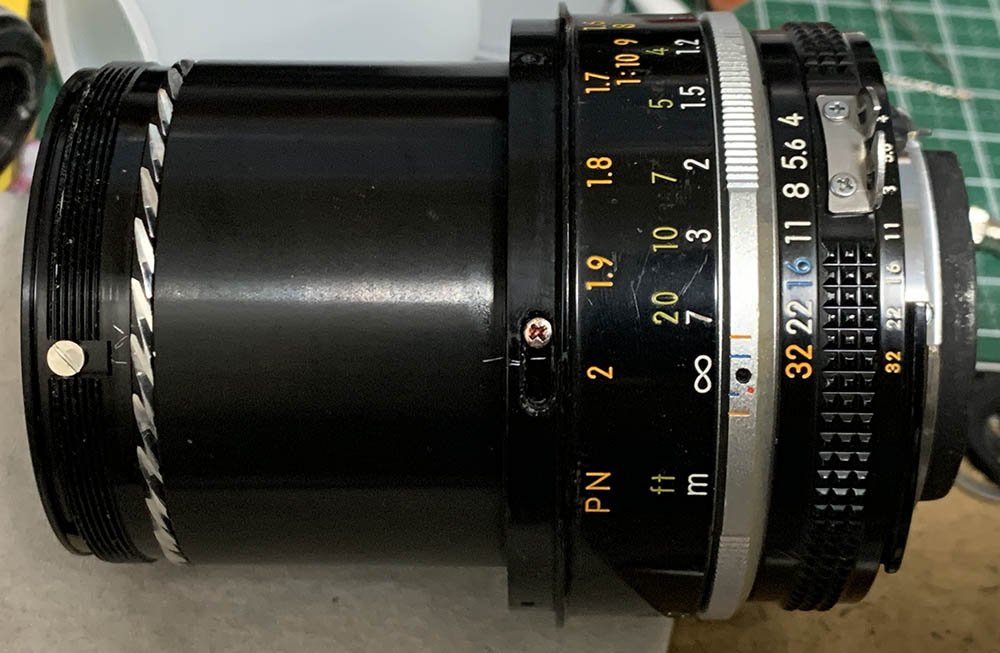 Reassemble everything to this point and adjust your lens’ focus. Read my article on how to adjust the focus of your lens. This helps educate you on how this is done in a DIY setting with readily-available tools. Tighten the screws of the distance scale once you are satisfied with the adjustments.
