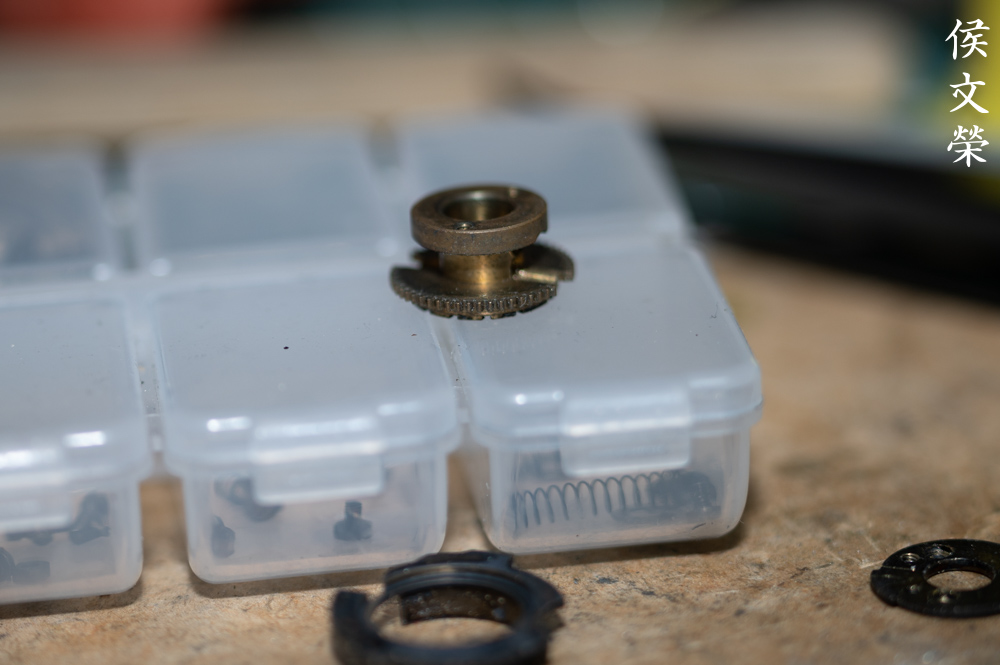 Separate the central helicoid from the outer one. Don’t forget to note where they parted since this is also the same spot where they should mesh. People forget to do this and waste a lot of time later figuring how to put these back. To prevent this from happening to you, read my article on how to work with helicoids.