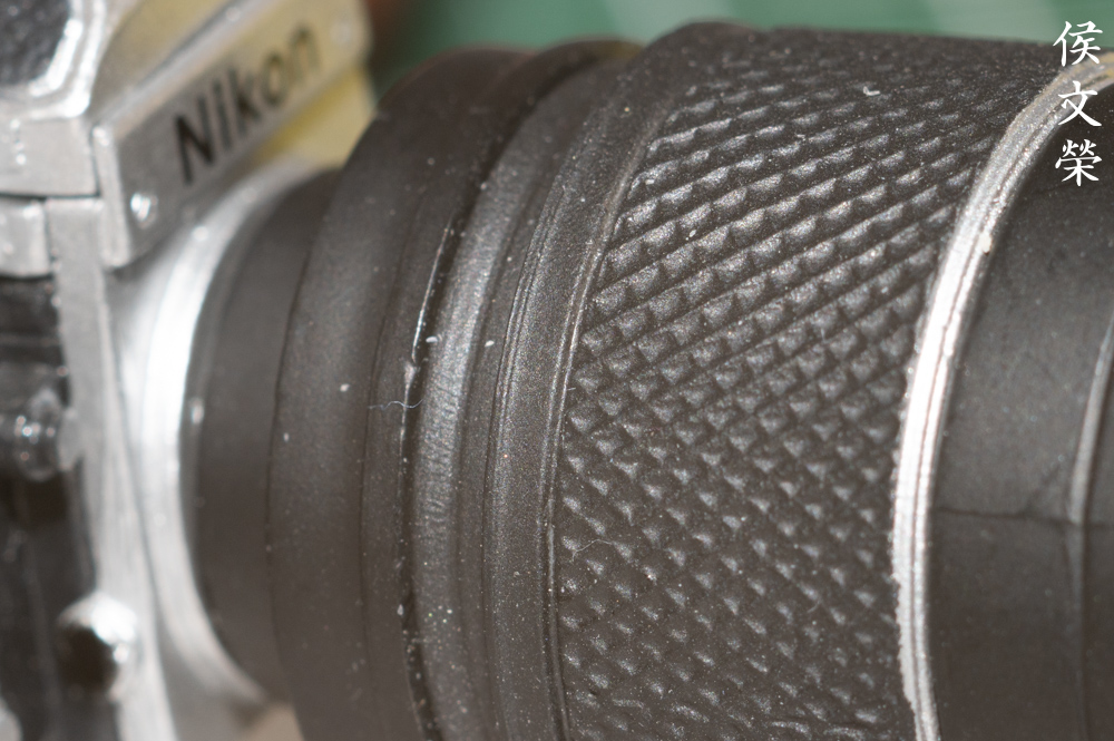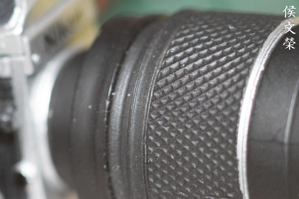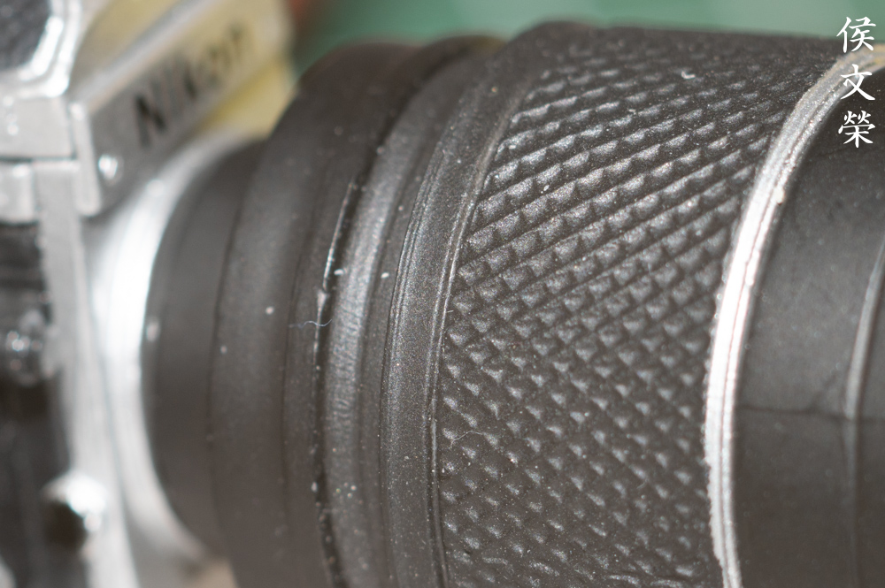 This is how long the whole thing is when focused to its closest-distance and the build-in hood is deployed. It gets even longer if it’s attached to a Nikon PN-11 when you need to get 1:1 magnification. The wide rubber part of the focusing ring is easy to identify by touch and turning it feels so good.