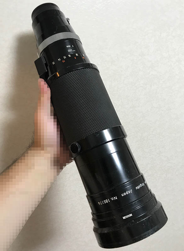 I wouldn’t recommend this to anyone other than collectors. There’s no reason to buy this or any lens from this class today since you could buy other alternatives for not a lot of money and they’re usually a lot better when it comes to performance and portability. When looking for one be sure that the barrels and rings operate and turn smoothly, the glass has to be clean and clear, too. Many of these were used by professionals so the barrels are worn. You will also want to check the bayonet mount for any deformations because it’s so heavy its weight could warp the bayonet which is made of brass. Actuate the iris with the stop-down lever and see if it’s snappy because the spring may be stressed when it’s stored with a camera for too long. Despite not being sold for long these don’t fetch a high price in the used market. You could get one for $80.00 on average, I got mine for $15.00. The one I have was sold as junk with damaged optics. These are great for display, something that will impress the curious photography fan. It’s also an important lens in Nikon’s history so it’s worth looking for one if you are a collector. Happy hunting.