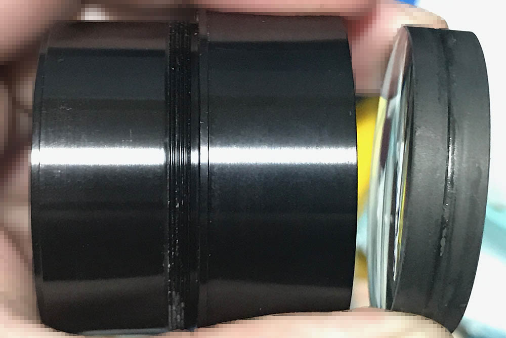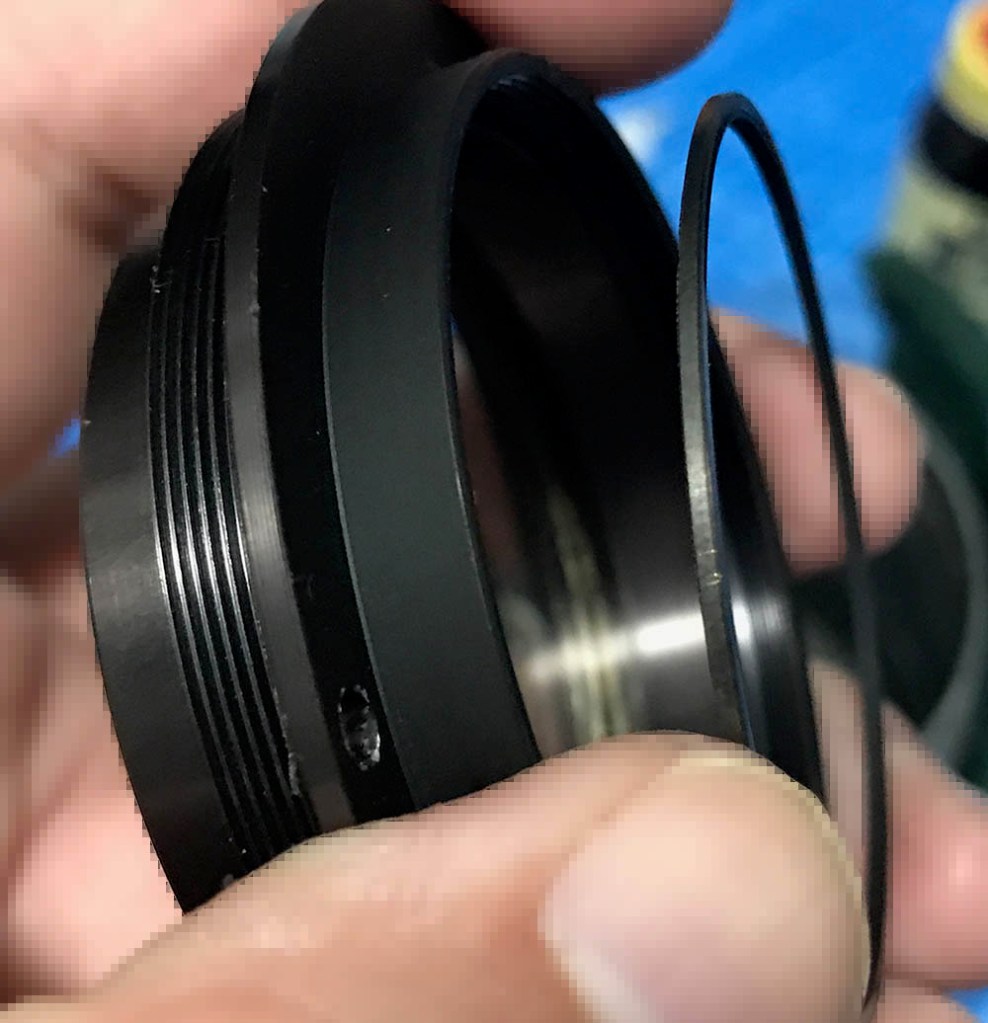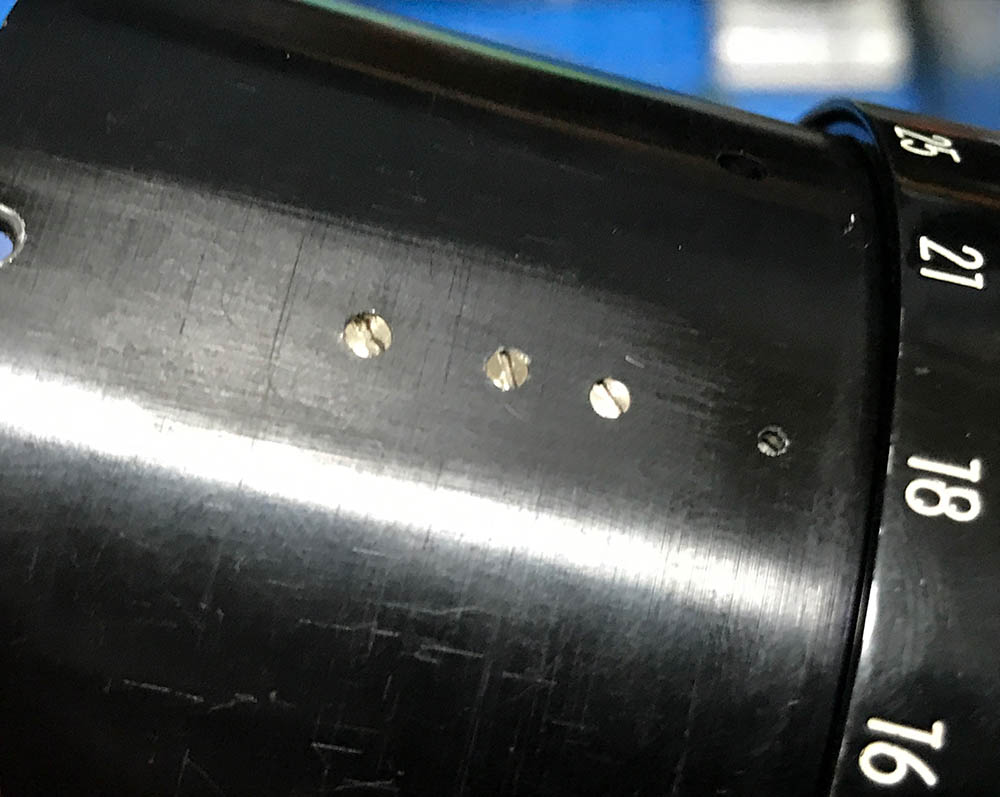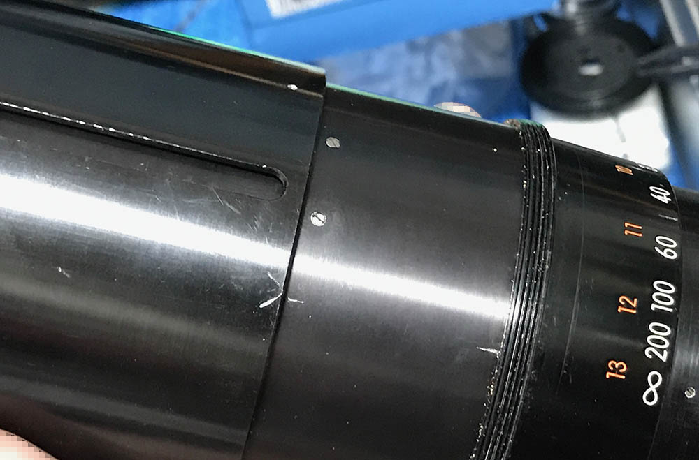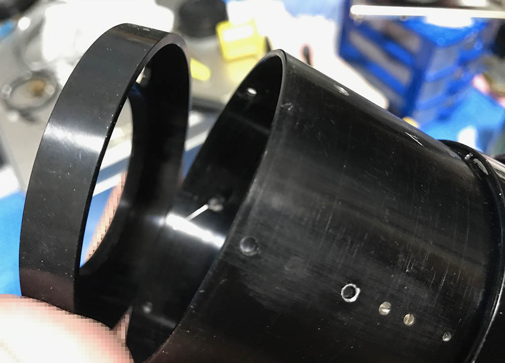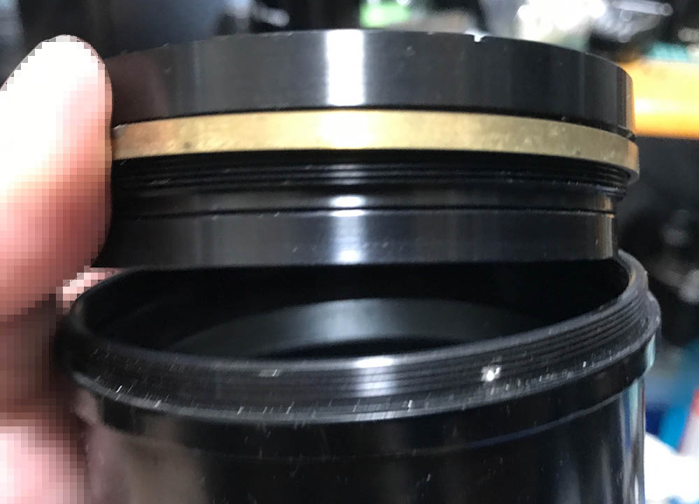 Unscrew this ring to remove the rear group. It’s sealed with paint, you’ll have to place a drop of alcohol to help soften the seal.