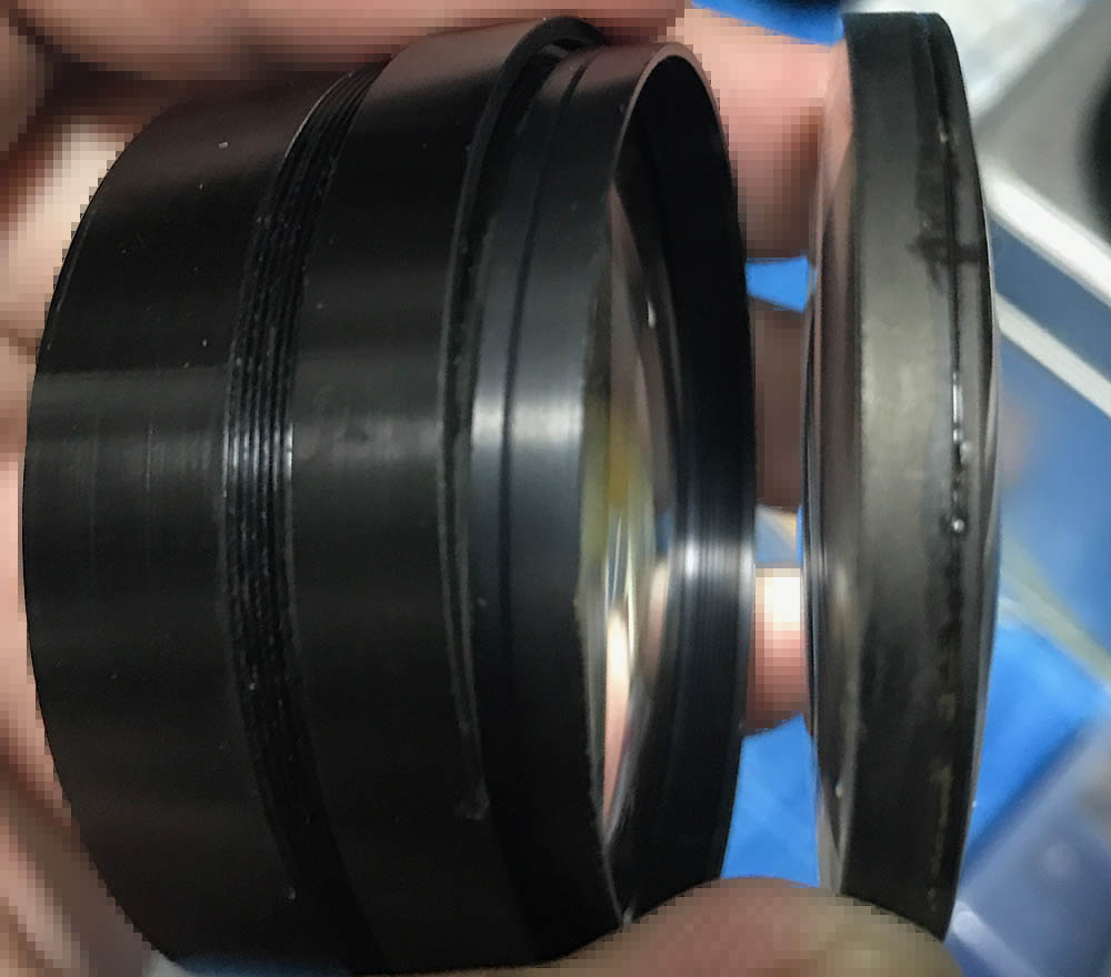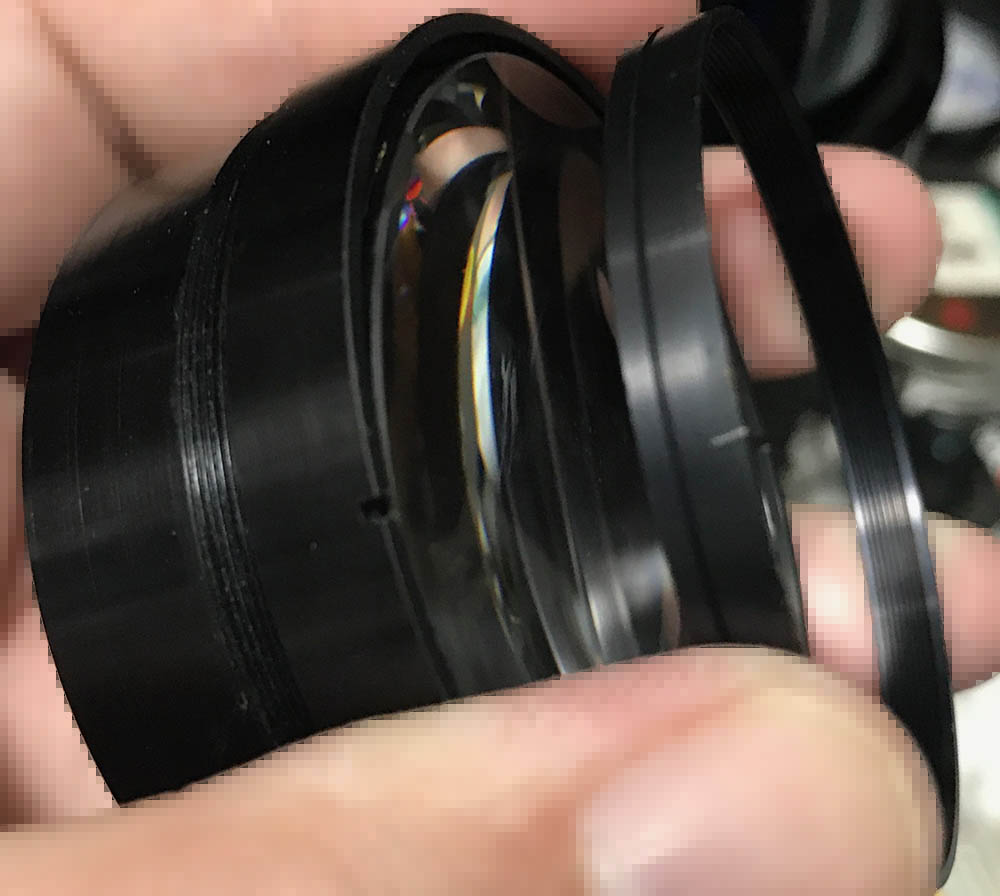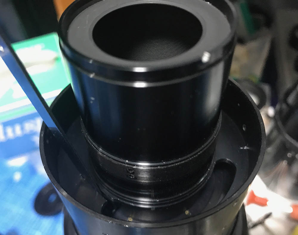 Be sure that the plate of the iris mechanism is aligned properly and the iris actuates effortlessly, do this before you reinstall the rear barrel.