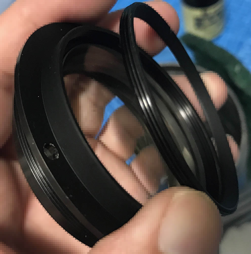 It houses the helicoid. Many people forget to mark where these separate and find themselves stuck. Read my article about working with helicoids so you’ll know how to put these back properly.
