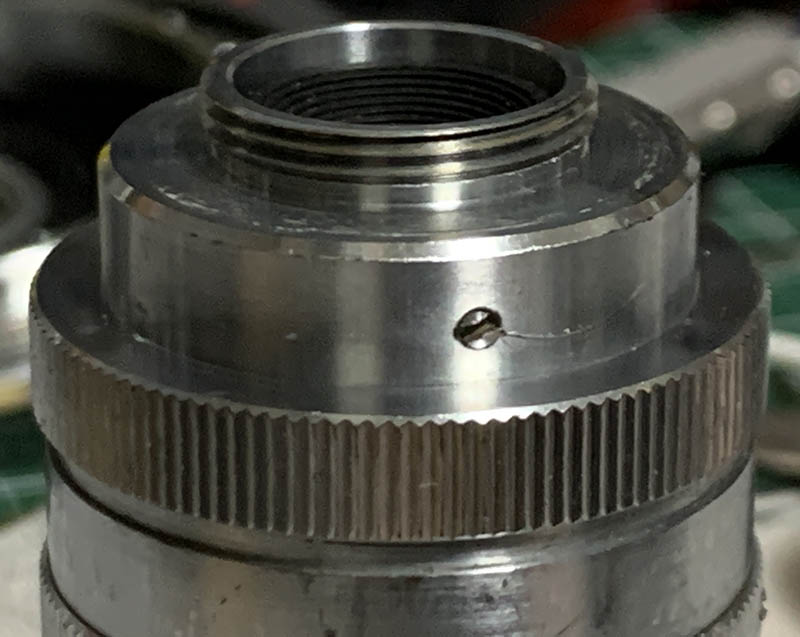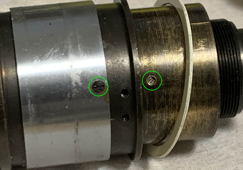 Carefully extract this screw so you can remove the outer tube of the iris mechanism. It couples it to the iris mechanism inside so turning the aperture ring will allow you to manipulate the iris.