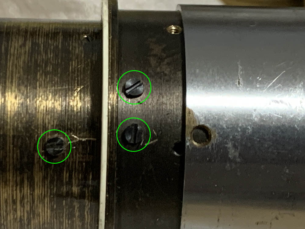 Extract the screws of the sleeve to remove it. Loosen the 3 set screws so you could pull the objective’s housing from the rest of the main barrel. Do not remove these set screws since it’s not easy to put them back.