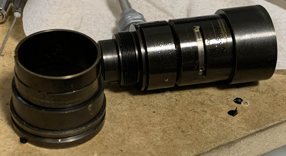 Here’s how it looks like now with the objective’s housing extracted from the main barrel.