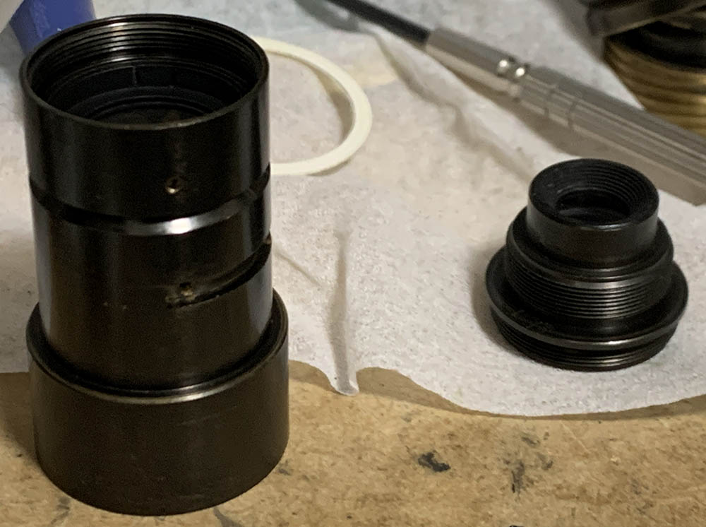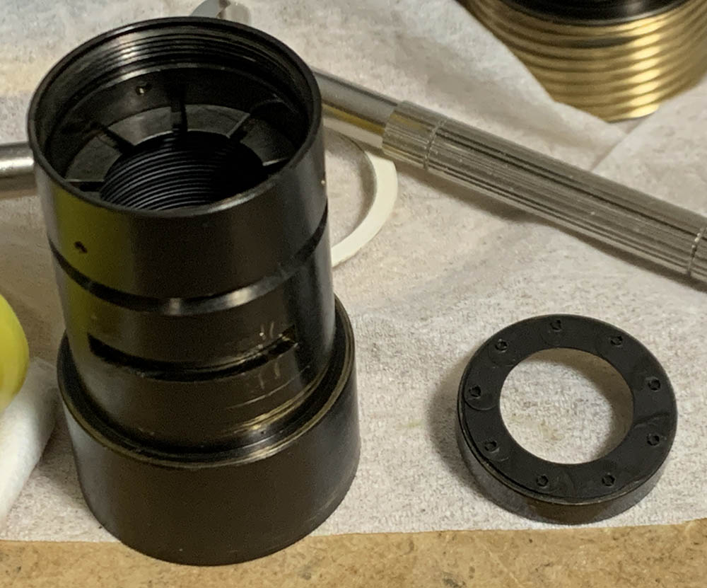 Do not lose this shim, its height is precise so the front barrel will sit perfectly on top of the focusing unit. If it’s too tall you won’t be able to secure the focusing ring properly and if it’s too short the front barrel will wiggle back-and-forth.