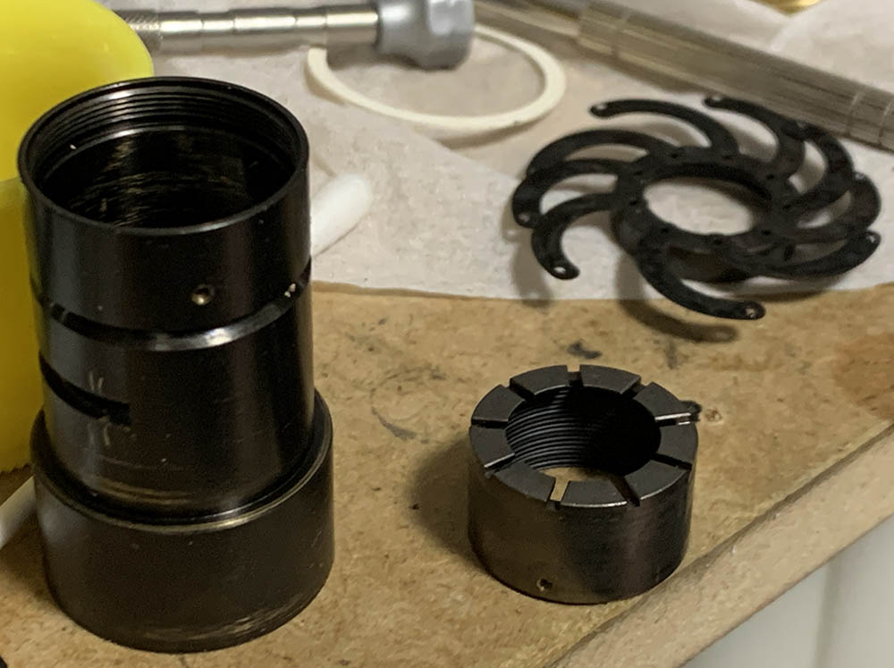 Remove the outer tube and set it aside but be careful when handling it since there’s a spring here for the click-stops.
