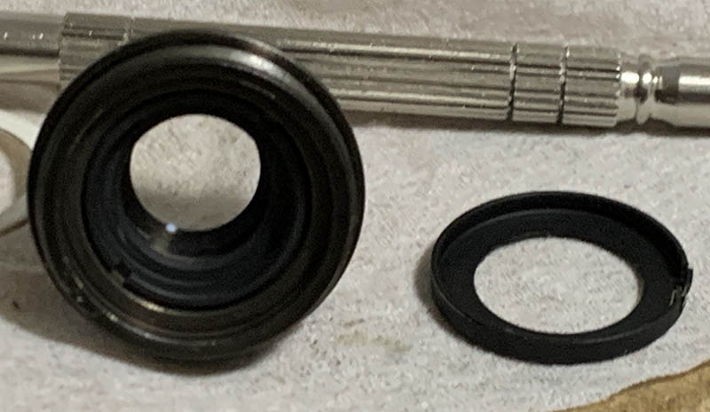 Carefully unscrew the retainer ring and extract the front group with a lens sucker. Note which side should be facing the front so you’ll know how to put this back.