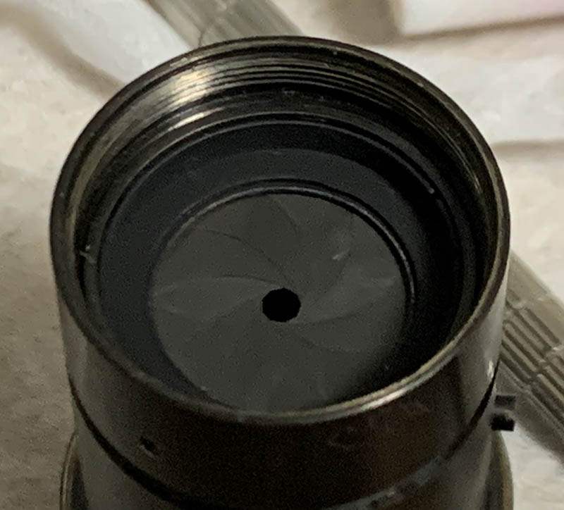The iris mechanism is now clean. I dusted it with powdered graphite to ensure that this operates smoothly. Blow-away any excess powder.