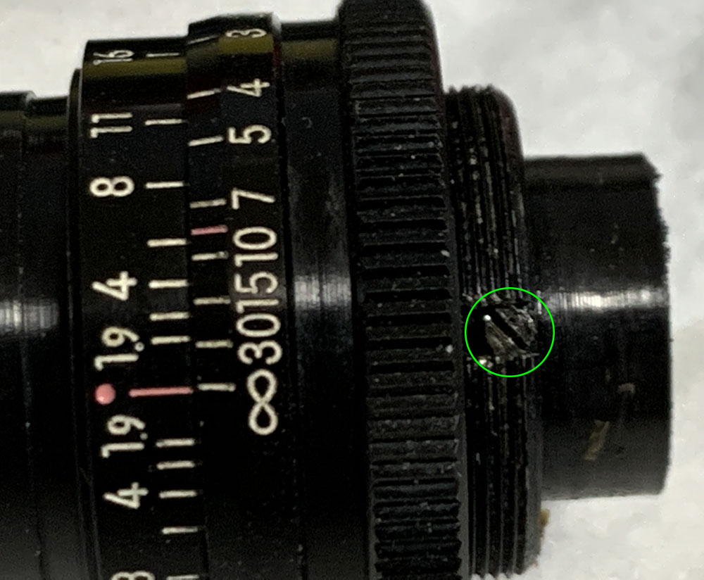 Extract this screw so you could dismantle the whole barrel. It serves as a helicoid key, too.