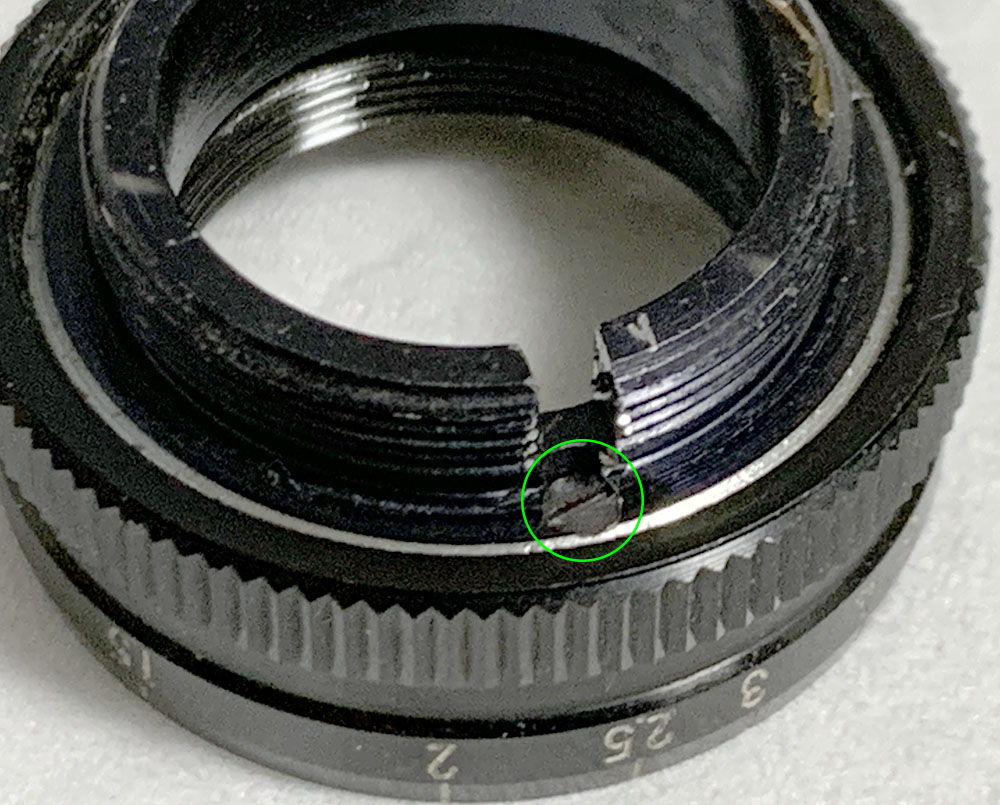 Clean the helicoids well and don’t leave any residue. I scrubbed mine with some toilet cleanser and rinsed it very well. I then pickled them in alcohol to remove any residue. I applied a thick-type of grease to the helicoids, a thin film will be enough and do not apply any grease to anywhere near the iris. A very thin film is also applied at the slots located at its neck so the aperture ring clicks smoothly.
