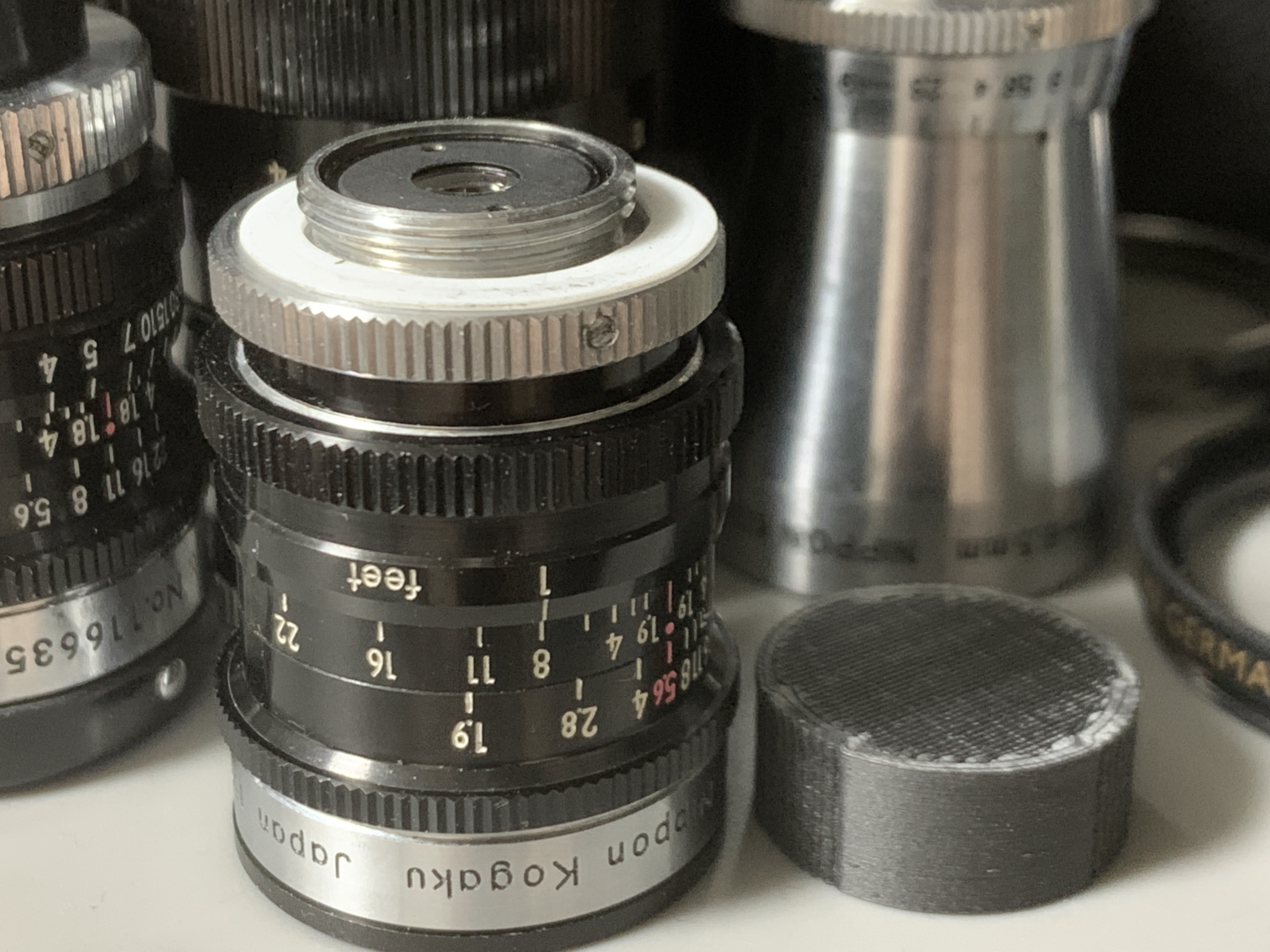 This is part of the black-trinity consisting of the Cine-Nikkor 6.5mm f/1.9, Cine-Nikkor 38mm f/1.9 and the Cine-Nikkor 13mm f/1.9. All of these were basically black-versions of their older, chrome counterparts.