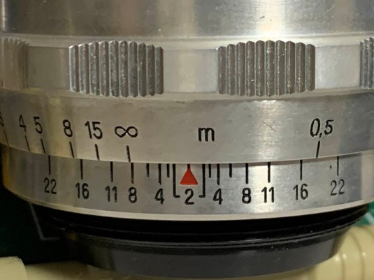 It’s a huge lens for its time, making the Zeiss Ikon Contax D look tiny. The barrel is all-metal, this is heavy despite using aluminum alloy. Handling is excellent due to the large focusing ring. The iris is of the preset-type much like what you’d see from many lenses made in that era. It has a limiter which allows you to constrain the range of the aperture ring, it’s something that I only see with post-war Zeiss lenses. Engraved in the bezel is a red “T” denoting that it’s coated and it means “transparenz“, a war-time secret developed by Zeiss. In fact, they were the first ones to master this deposition-type method which is effective but not as durable as what Nikon developed during the war that is the reason why the coating in Nikkors are tougher than what the Germans had since it was developed for use with submarine periscopes.