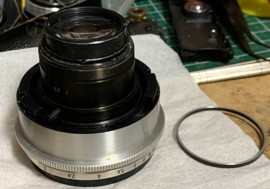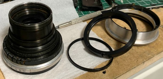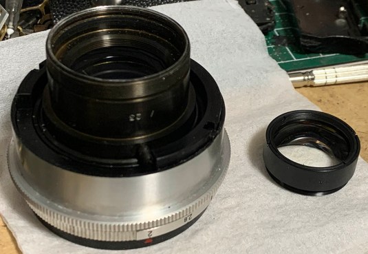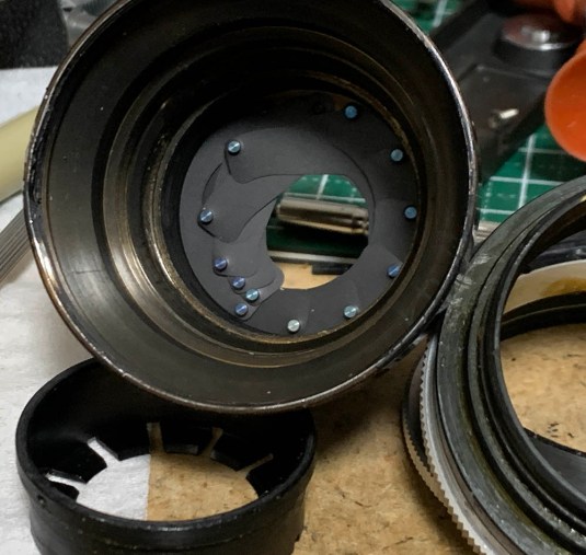 Working on the iris mechanism is the most difficult part of servicing this lens. You can read my article on how to service a preset iris to see the work involved.