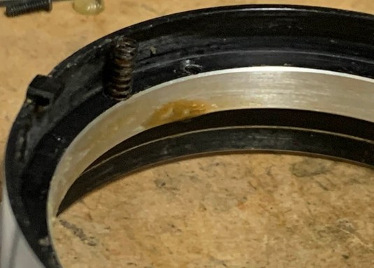 Once the helicoids have been dismantled you’re now able to access that retainer ring that we talked about in the first section. When putting the helicoids back do not forget to put this ring back facing the right direction or you will have to open everything up again just to correct it.