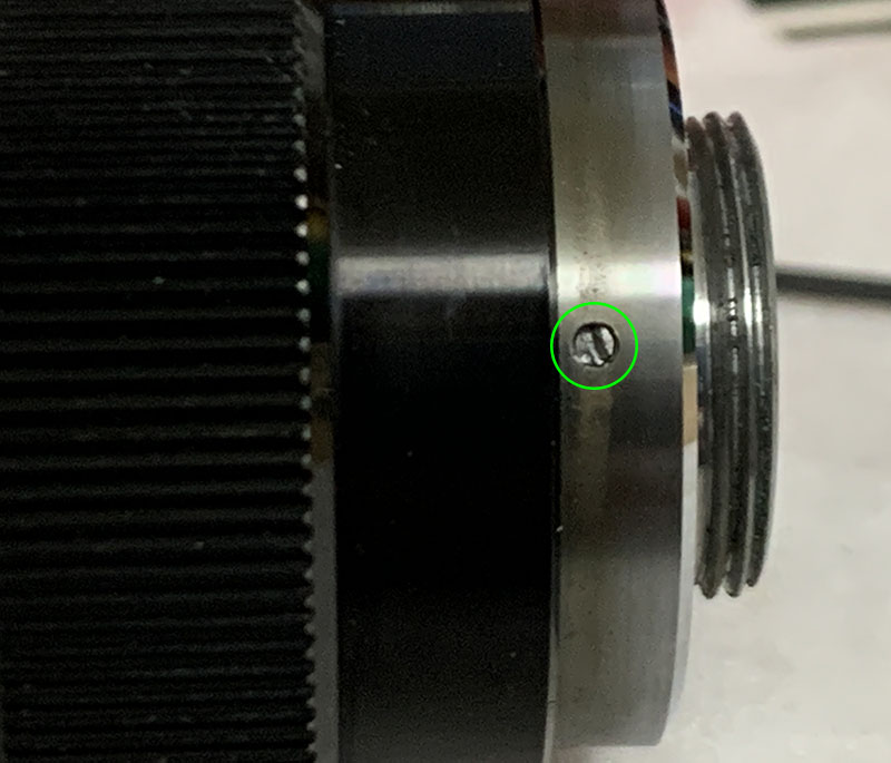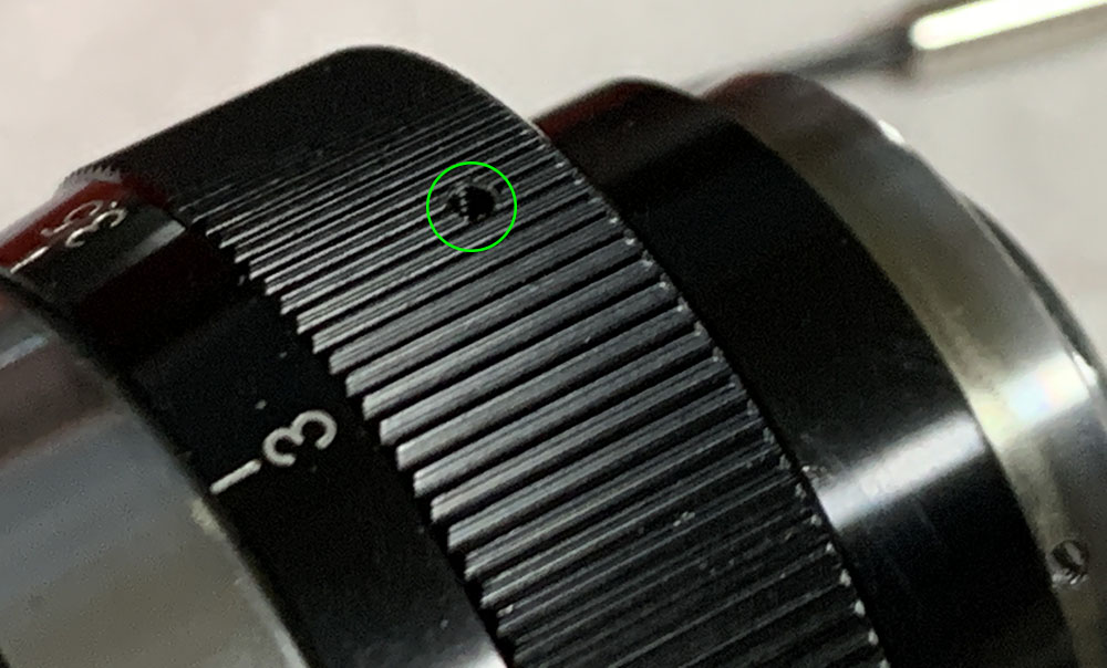 The sleeve can be removed by loosening its set screws. Be very careful when removing this, there’s a spring-loaded ball squashed between this and the focusing ring and you wouldn’t want to lose it, I lost mine so I had to replace it with an appropriate one from my spares box.