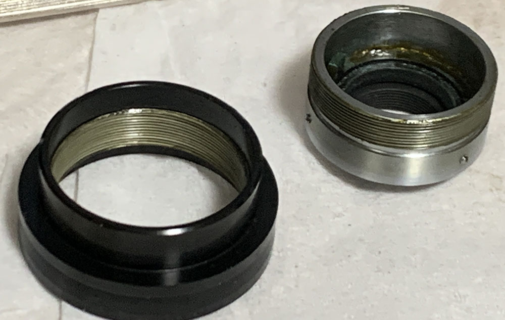 Carefully unscrew the helicoids and note where they parted. Many people get stuck here because they forgot to do this and spend countless hours trying to guess where the helicoids should mate. To prevent this from happening to you see my article on working with helicoids. While this appears to be a single-entry thread you don’t want to take any chances.