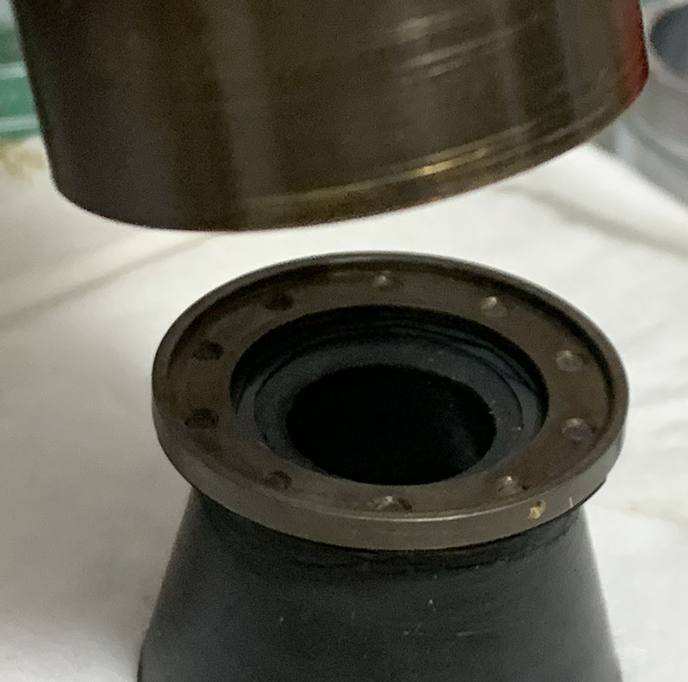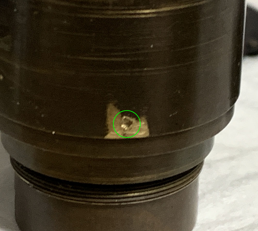 Pull the main barrel from the focusing unit. Notice that the brass has corroded and left a nasty deposit inside the barrel which fouls everything.