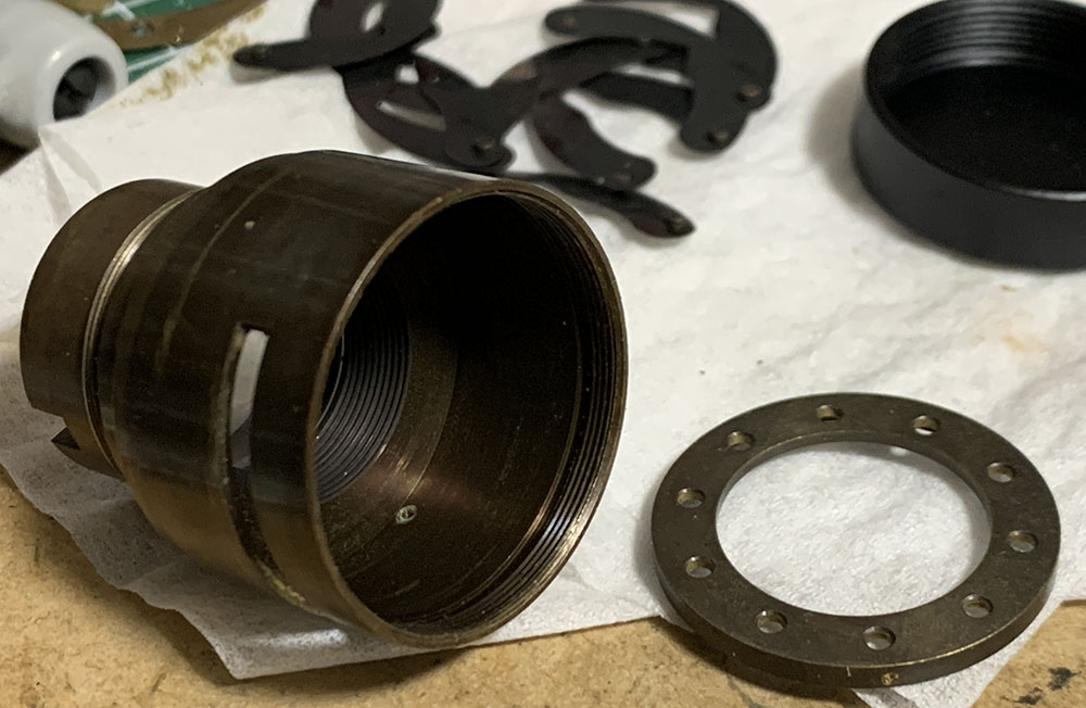 Pull the rotator cup off and the iris mechanism can now be dismantled. Be careful when removing the leaves, they can be a bit tight.