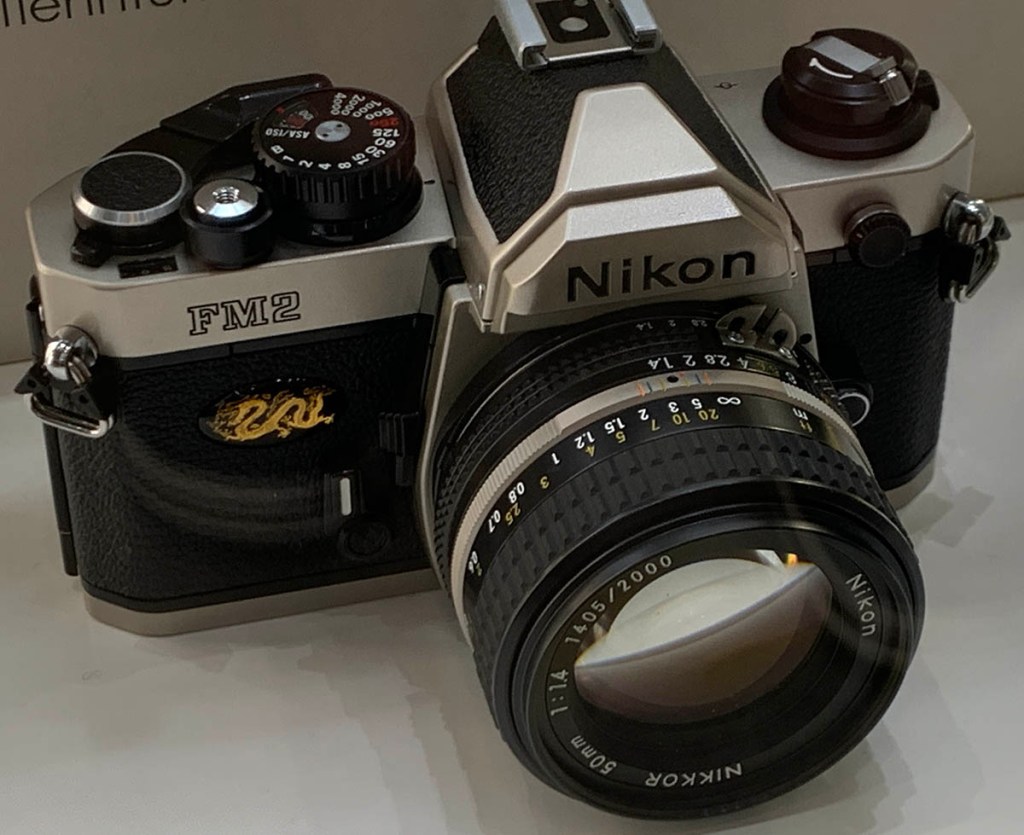 This is the special “Year of the Dragon” edition of the Nikon FM2, it also comes with a matching lens engraved with the year and matching serial number of the camera. This is a complete set.