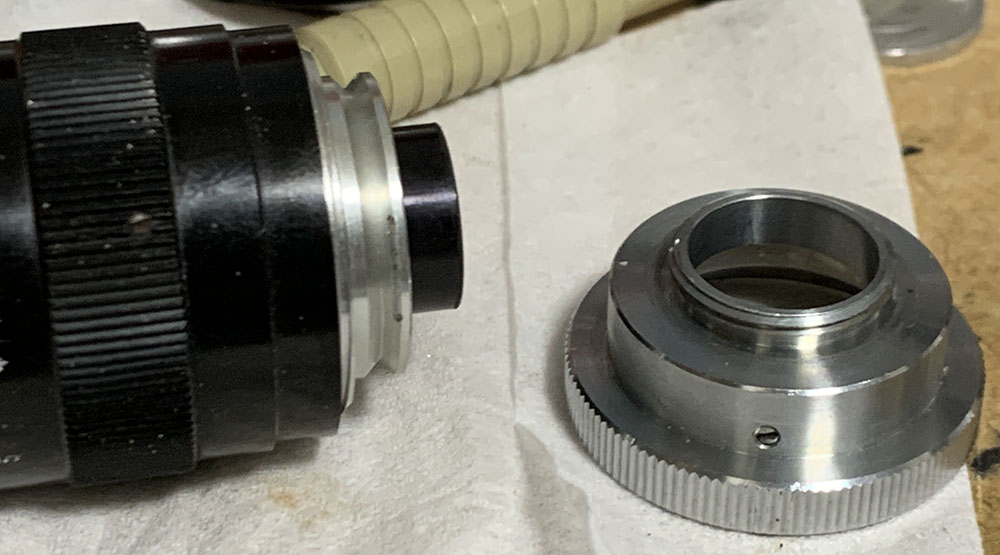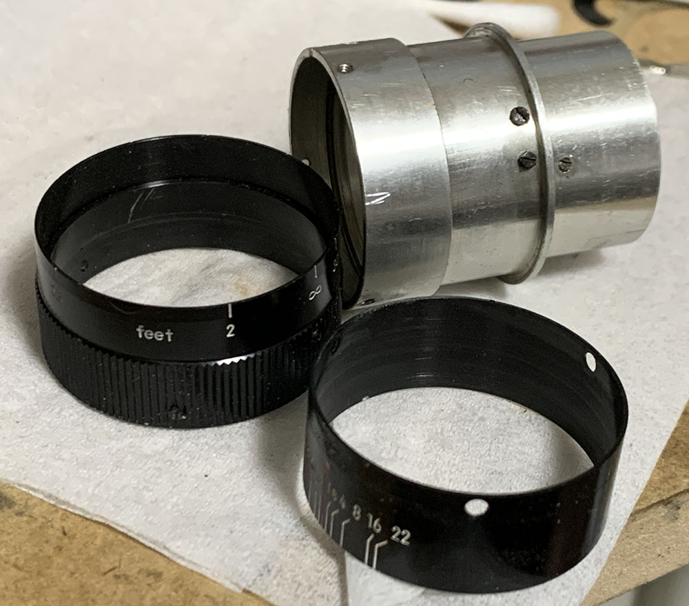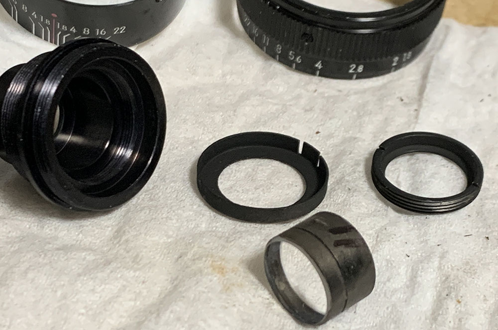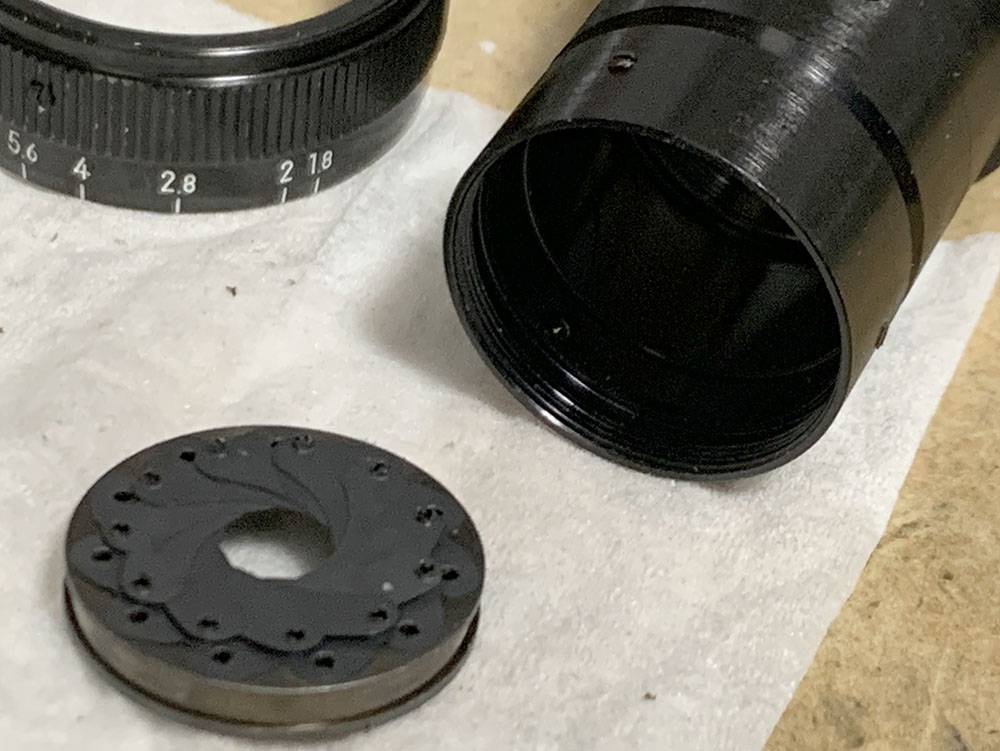 Unscrew this so you can begin to dismantle the iris mechanism. It couples the outer tube to the iris mechanism so you will be able to control it by turning the aperture ring.