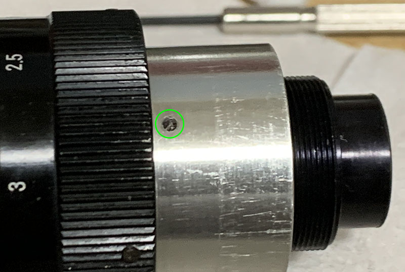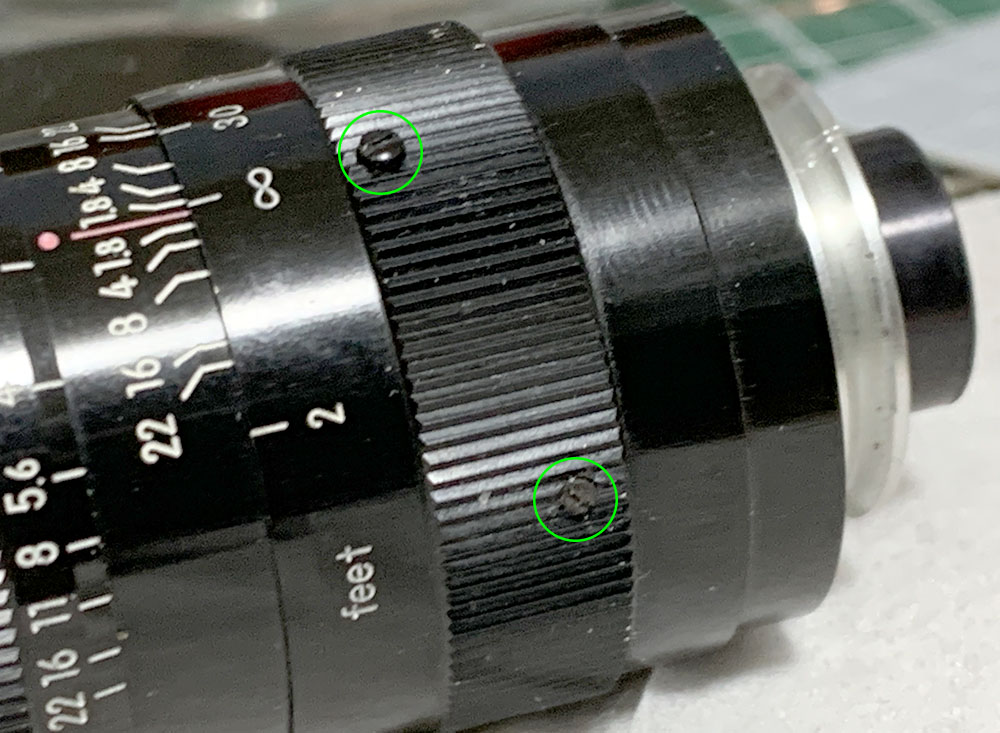 Once the focusing unit is off, loosen these to remove the front barrel from the inner barrel.