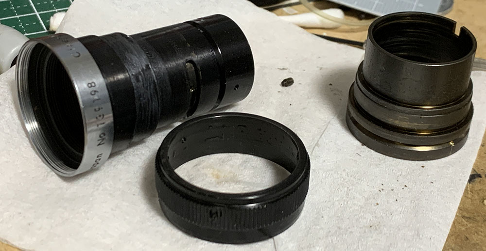 The construction is nearly-identical to the Cine-Nikkor 38mm f/1.9, what works for that lens will work with this, too. It’s important to extract the optics as soon as possible and to dismantle it at the right order but that won’t be the case for this one because some of the parts were glued. I will take a long detour so if you’re concerned about how to do all the sequences right read my Cine-Nikkor 38mm f/1.9 article.