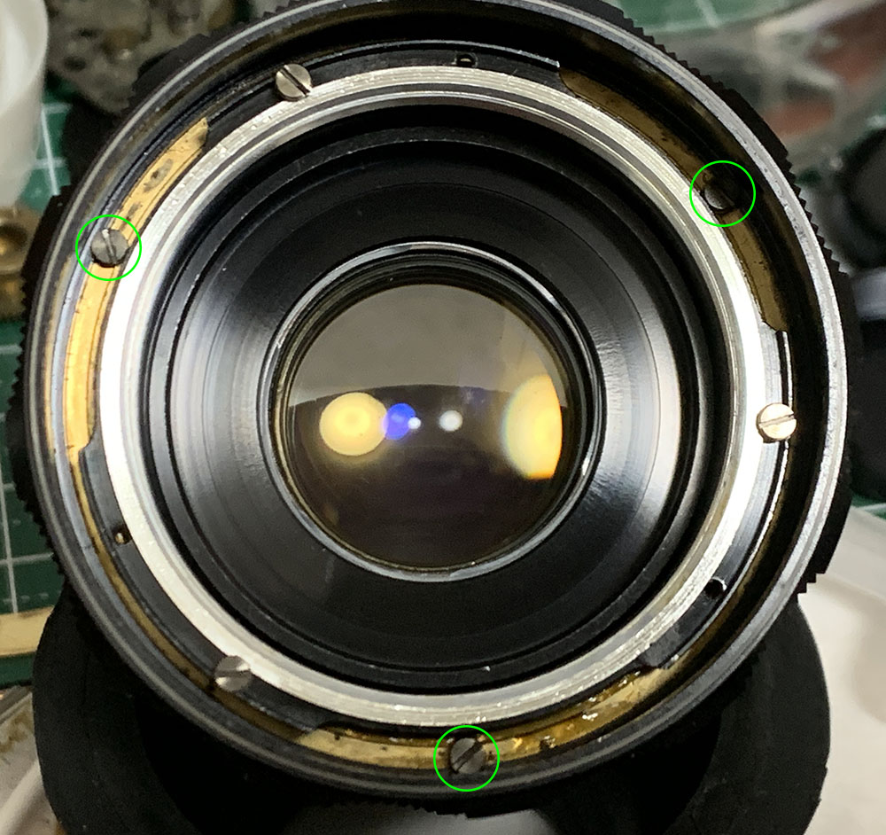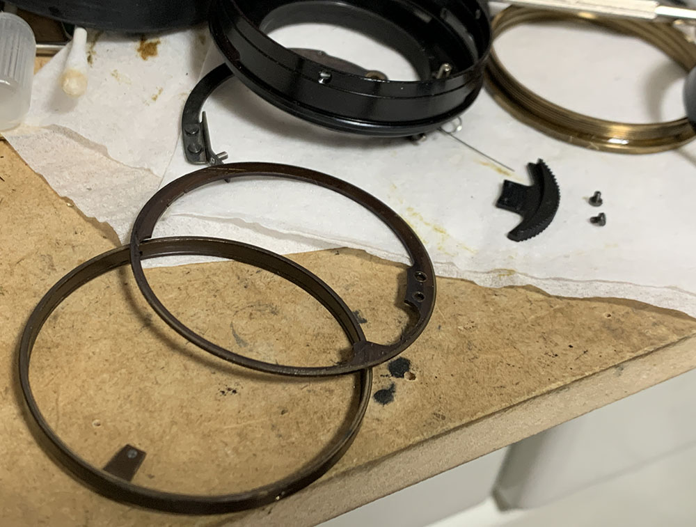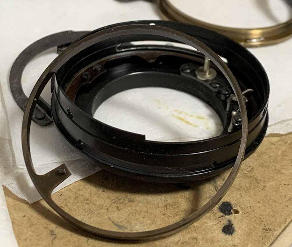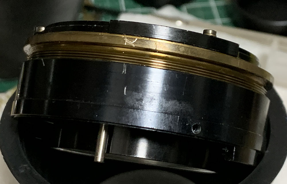 Extract these so you can remove the objective’s housing. I could’ve extracted this a lot earlier but I’ve decided to do this at the current step since I wanted to know how things operated. Be sure to note its alignment because this part can be adjusted, putting this back the wrong way will result in inaccurate aperture values.