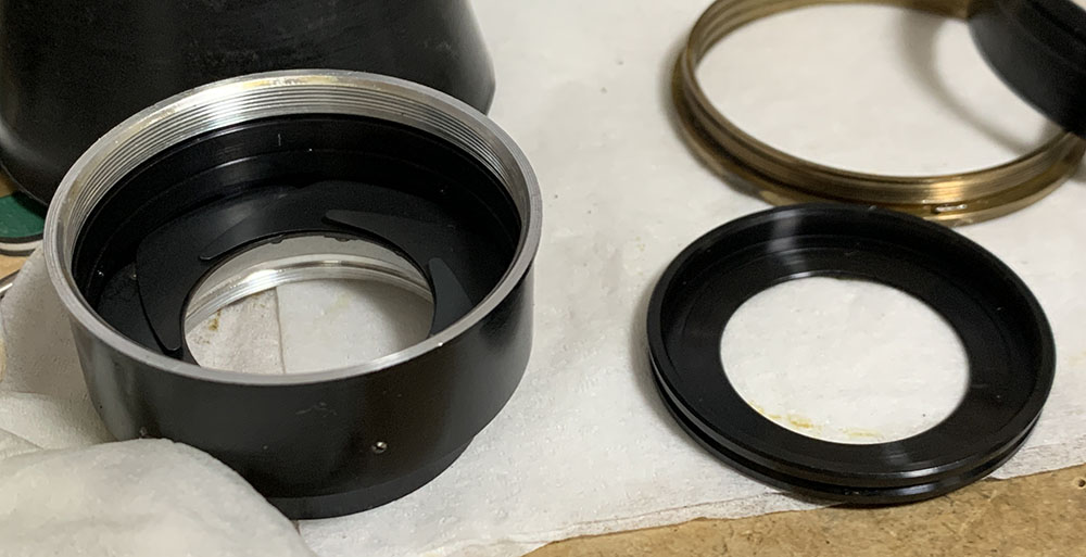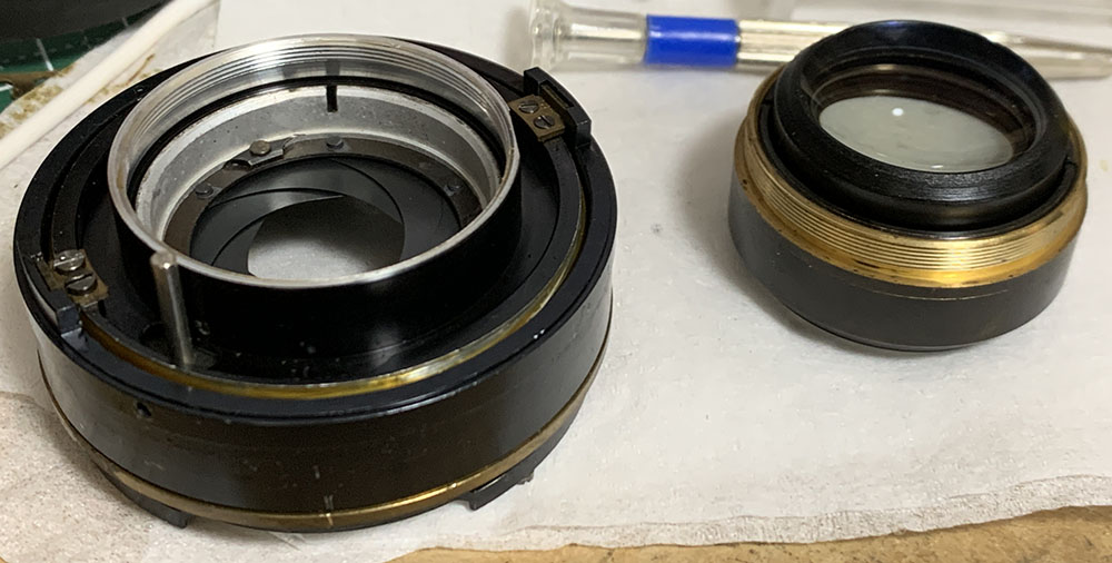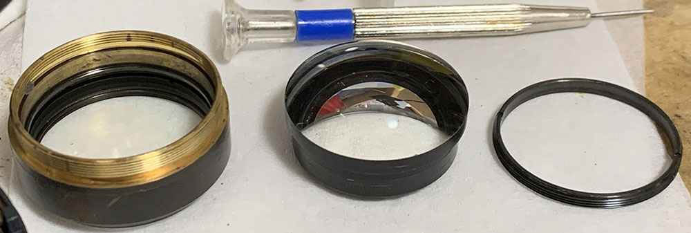 The front optics assembly can be dismantled in this manner. I didn’t bother to extract the 2nd group since it’s clean.