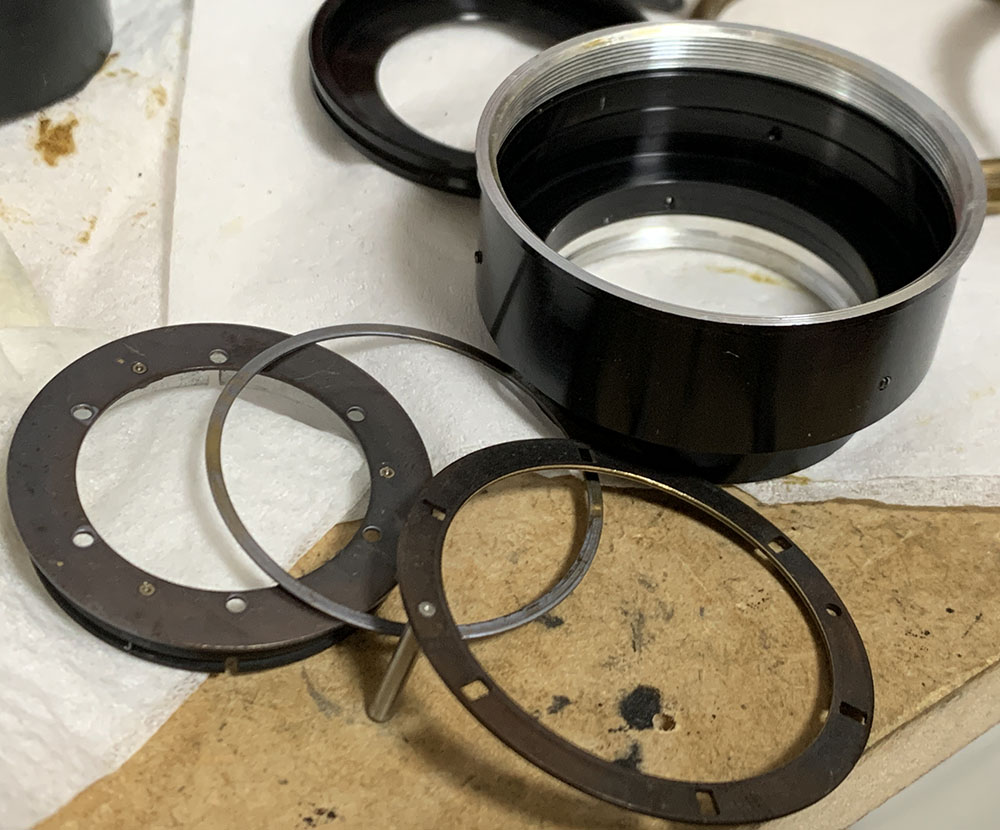 This is how the rings of the iris mechanism looks like after I polished them. The condenser and diaphragm seat should be very smooth in order for them to turn properly.