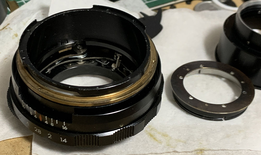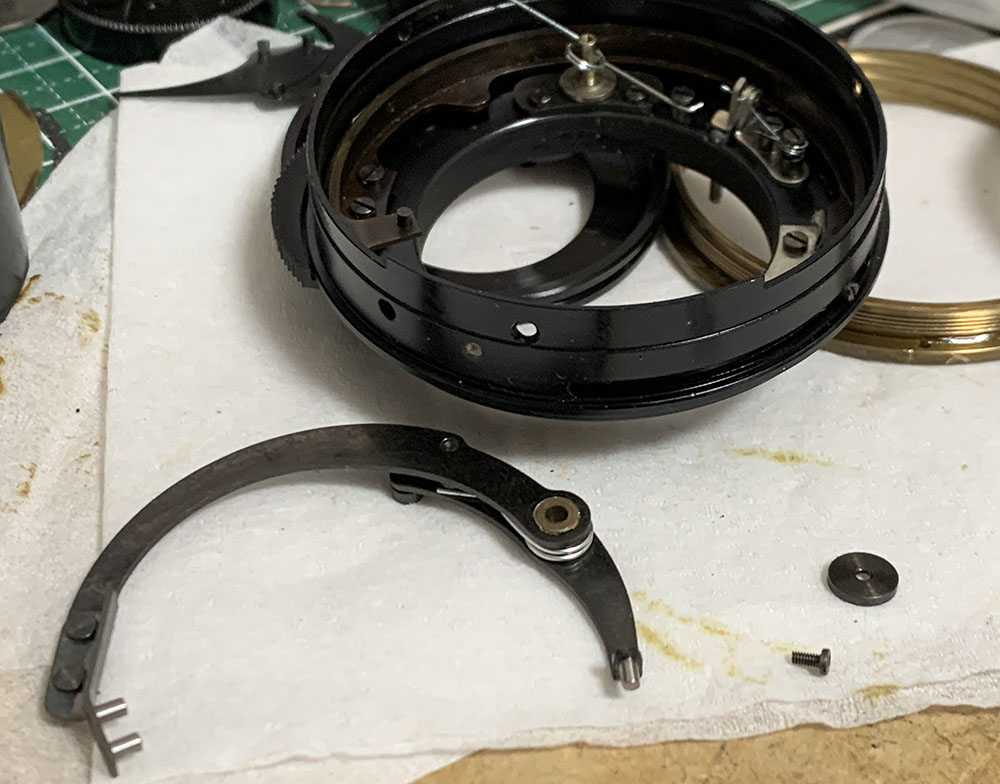 The stop-down mechanism is a complicated design and there are many adjustable parts here so it’s best that you take a lot of photos and notes before your remove anything so you will be able to put things back properly again. This isn’t something that I’d recommend a beginner to work on because of that.